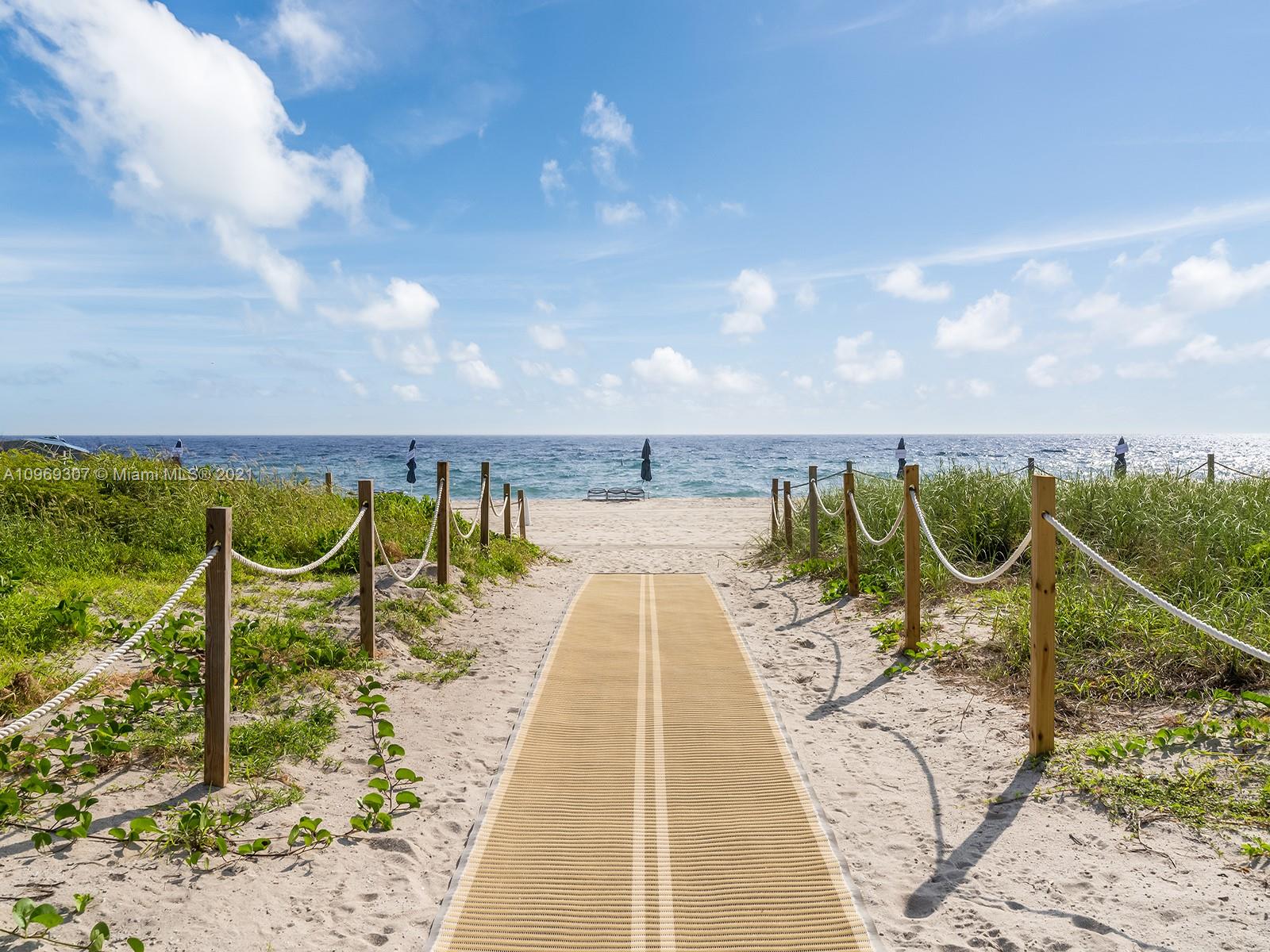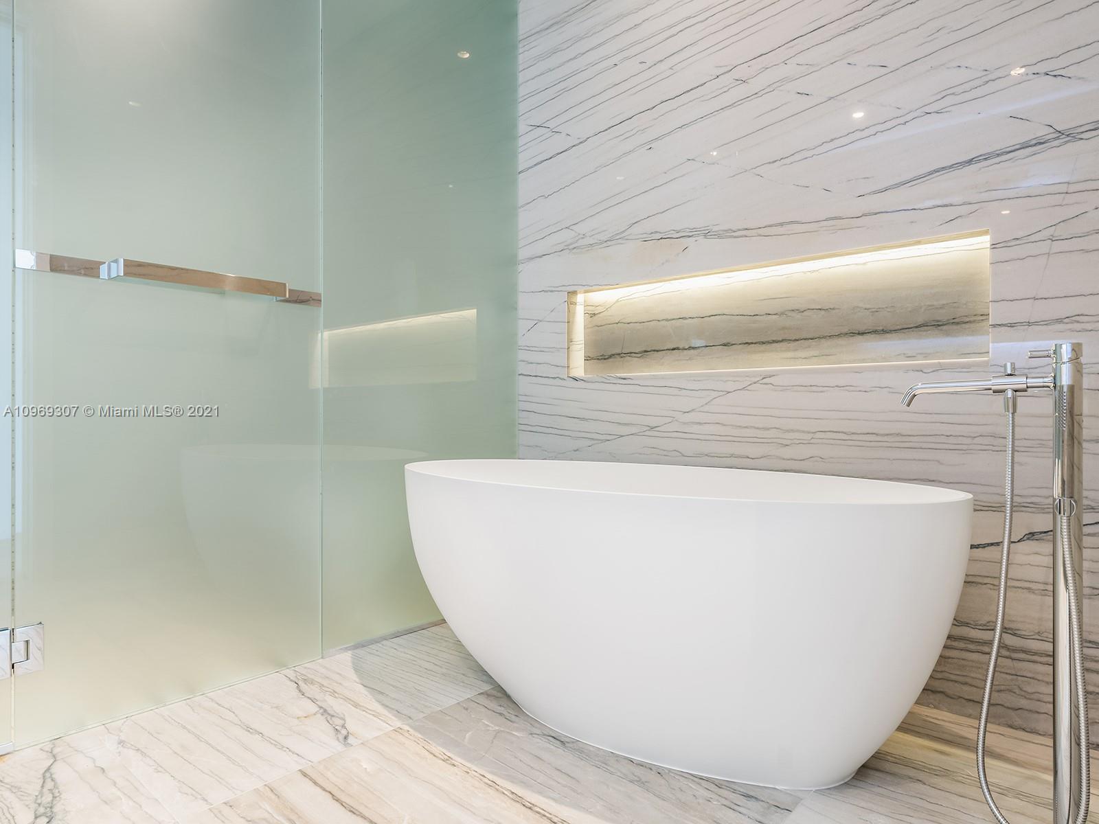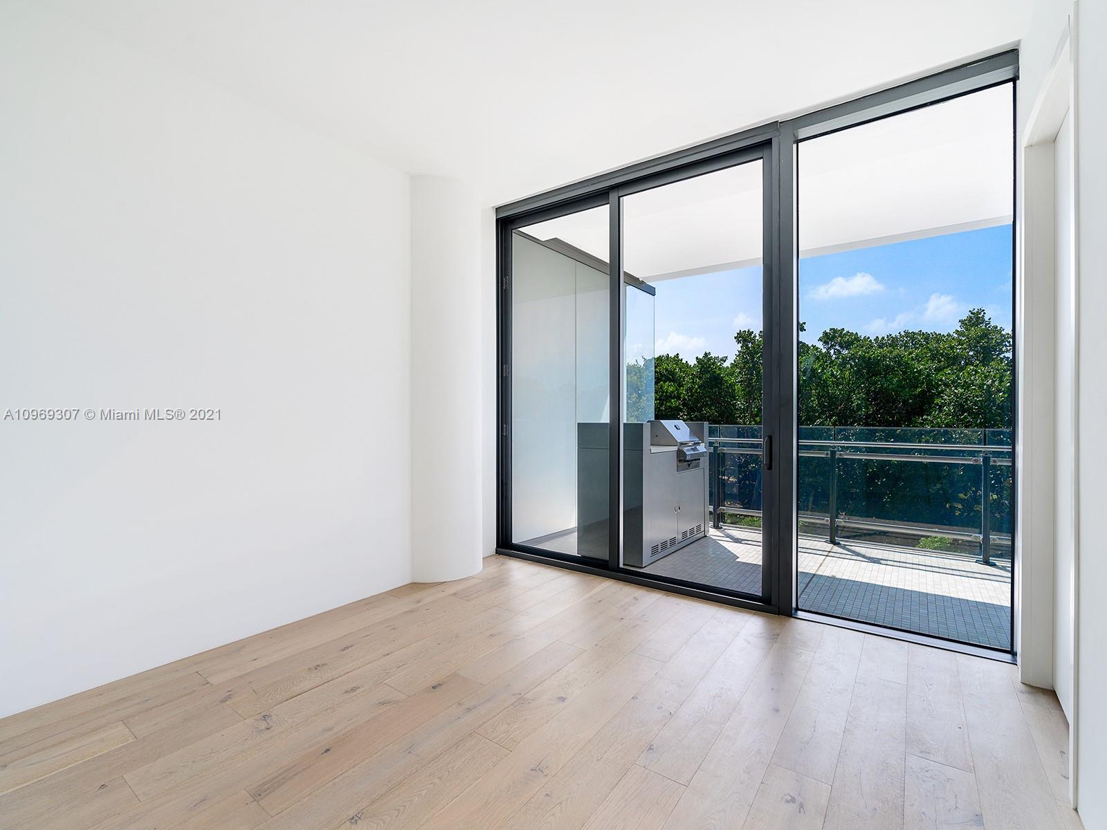 Located in one of Miami Beach’s newest and most unique buildings, Eighty Seven Park, designed by internationally renowned architects Renzo Piano Building Workshop, this spacious two-bedroom, two-and-a-half-bath split-plan residence overlooks a spectacular park to the south and the Atlantic ocean. With almost 1600 sq ft of interior space and a huge 564sf terrace, the apartment is very well appointed with a private elevator entry, chef’s kitchen with Subzero and Wolf appliances, summer kitchen, wood floors throughout, and luxurious baths. The boutique building, with only 65 units, was designed with superlative amenities, including a serviced beach, pool concierge, fitness center and state-of-the-art spa with hammam, enoteca and fugo bar, and fully underground parking garage.