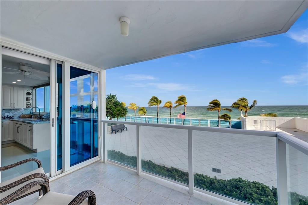 Million Dollar, full oceanfront views visible from every angle in this beautiful condo. Wake up to breathtaking sunrises, just steps away from the private beach. One of the few largest corner units, with wrap around balcony and unobstructed views of the ocean. Immaculate, fully renovated two-bedroom, split floorplan with 2.5 bathrooms, walk-in closets and an abundance of natural light with floor to ceiling impact windows. Gourmet kitchen offers an 8 FT island with lots of storage and a washer and dryer inside the unit. High end rectified porcelain tile flooring throughout with finishes in neutral tones. Amenities include pool, tennis courts, sauna, jacuzzi, gym, ballroom, 24-hour security, covered parking garage and a storage unit. Corner units rarely available. MUST SEE!