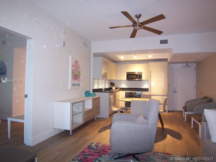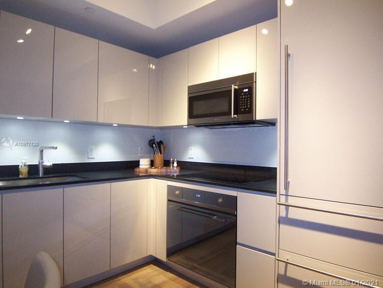 Lovely 1BR in great location. Lowest priced 1BR in the building. Modern Kitchen, Wood look Ceramic Flooring, Full Sized washer/dryer in the unit. High floor makes for great city view. Walking distance to great restaurants, shopping, train; easy access to airport and beaches. Great amenities: Turkish steam bath, 2 story racquet ball court, basketball court, 2 pools, including rooftop pool with rooftop bar! This unit includes a storage unit, #40. Building allows showings Monday, Friday, Saturday 11-5.