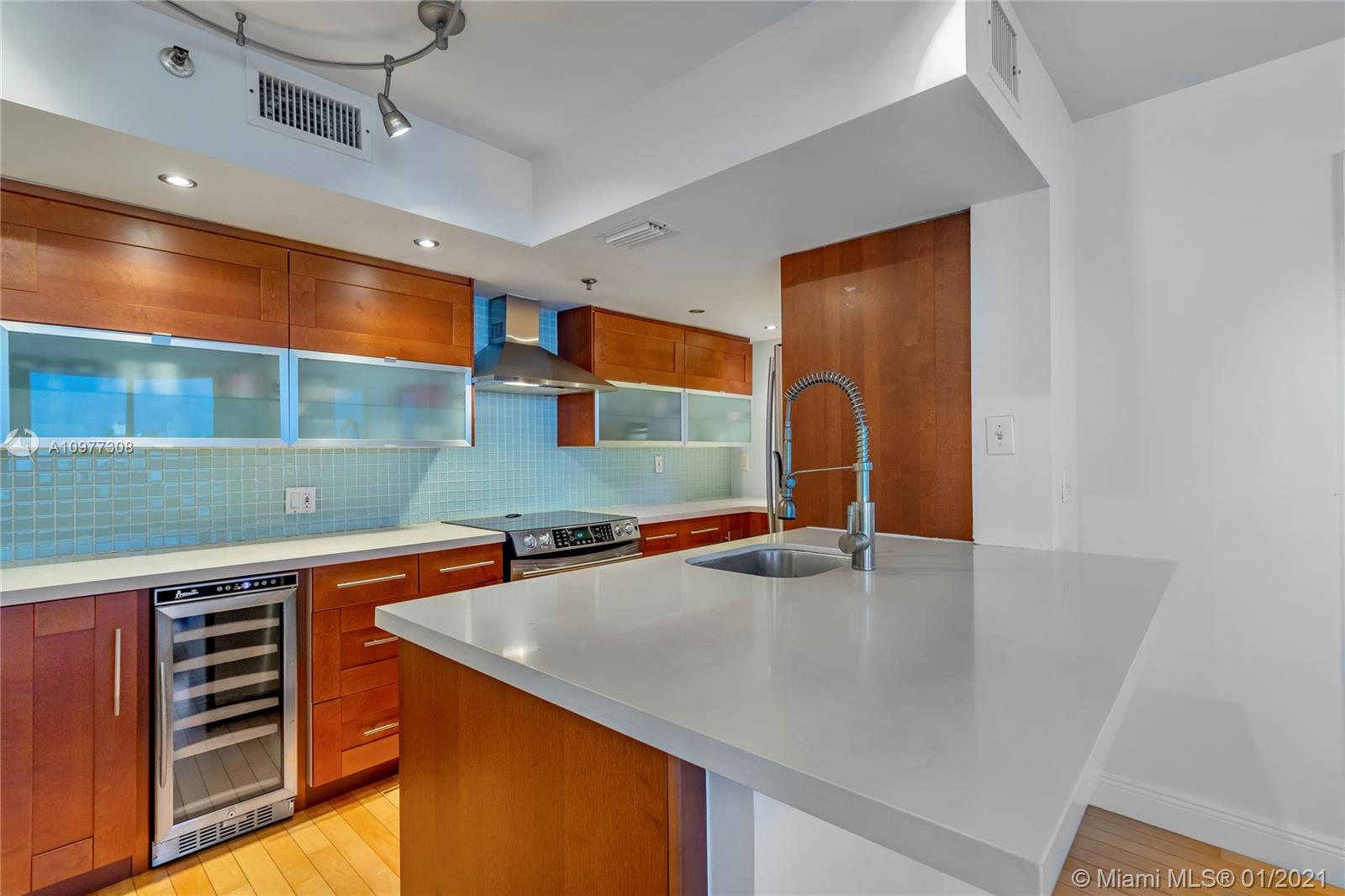 Beautiful 2 bedroom / 2 bath spacious high floor home in South Beach. Substantially updated residence offers a large kitchen with plenty of counter space, stainless steel appliances including dishwasher and wine cooler, spacious living area with plenty of natural light and a large balcony with access from the living area and guest bedroom. The guest bedroom wall has been replaced with sliding doors to offer a larger living area when open or doors can be kept closed for a private 2nd bedroom. The Bayview plaza offers a pool, sauna, gym, common laundry, game room and is located in one of the hottest areas of South Beach, currently going through a major re-development and adjacent to the newly completed pedestrian bridge with direct access to Sunset Harbour and steps to Lincoln Road.