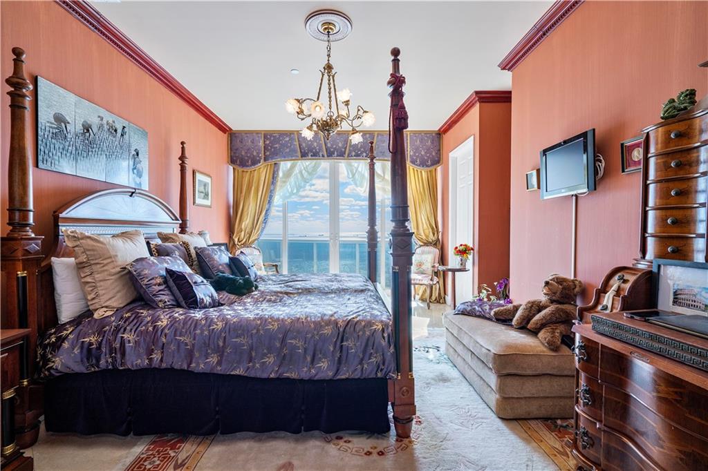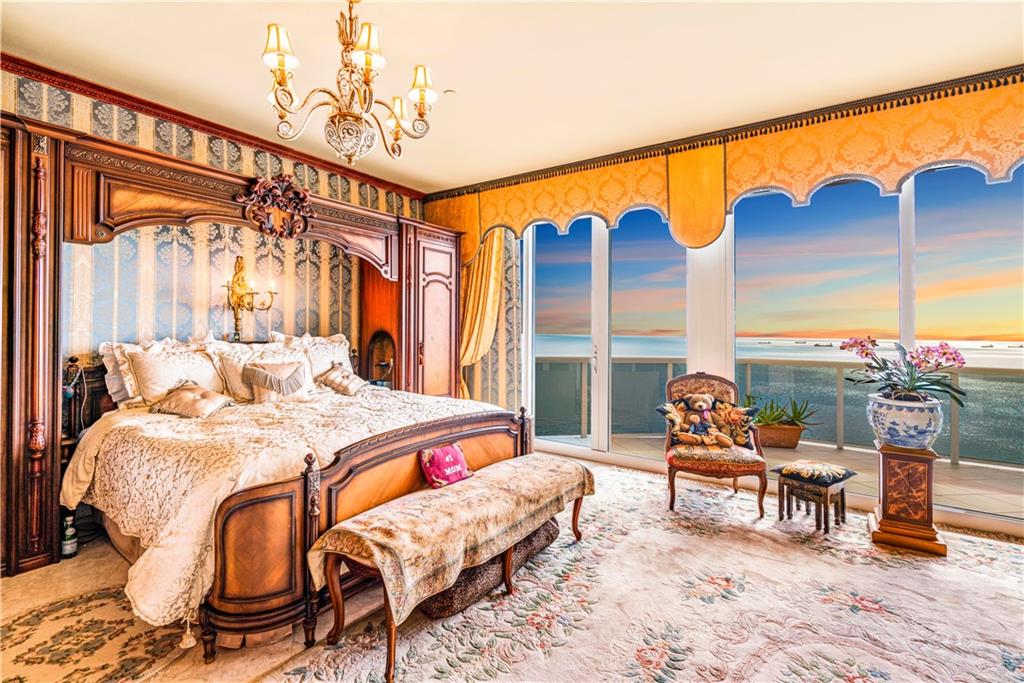 Southeast Ocean Grand Penthouse at L'Hermitage. A Regal Palace in the Sky! Largest available on highest floor of complex. Over 7,000 square feet of living space w/ 6 separate balconies. All encompassing 270 degrees of breathtaking views for sunrises, sunsets, city views, coastline views, intercoastal views. 11' ceilings, private elevators, recently upgraded HIGH IMPACT windows and doors throughout. 6 bedrooms, 6.5 baths, 2 kitchens, formal office, extra storage, separate entrances for large families that want their own living areas. 3 Prime parking spaces included! This one of kind magnificent unit is a must see. L'Hermitage is over 10+acres resort style living with a 2.5 acre pool deck, café, pools, spas, saunas, steam, attended beach, pets ok