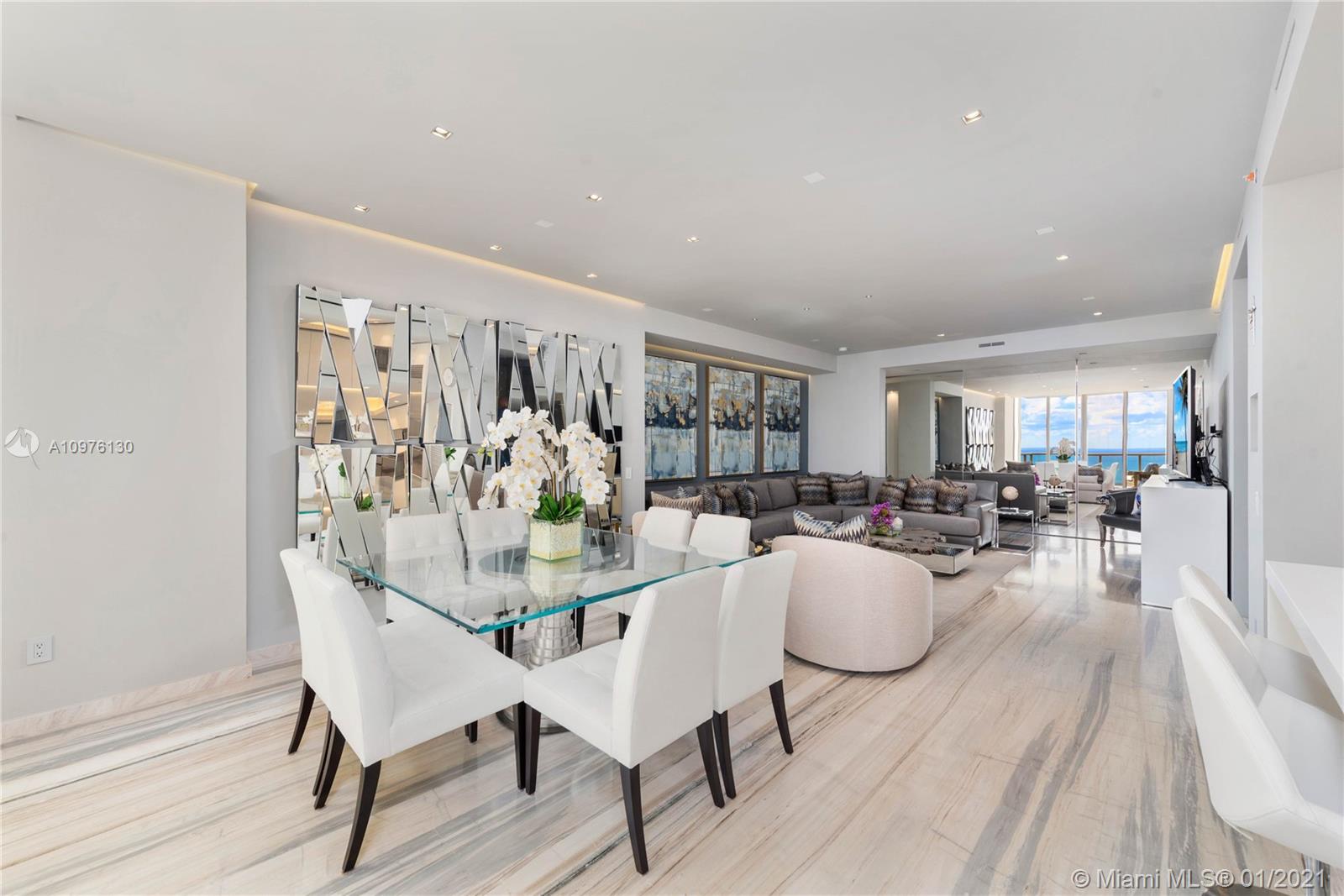 St. Regis Penthouse 8 boasts some of the most amazing ocean and coastline views in all of South Florida. Sit and enjoy the southeast exposure from any of the three balconies. When the elevator stops at the private foyer, step right this tastefully renovated 2 bed + den, condominium that boasts imported silky smooth Italian marble floors throughout, a Crestron smart light and sound system. This home has everything expected from a St. Regis penthouse. Residents enjoy all of the hotel amenities such as cabanas, restaurants, room service, white-glove butler services, and of course, access to the Remede Spa. Residents also have VIP status to all of these amenities, 2-valet parking spots, and a 24-hour concierge.