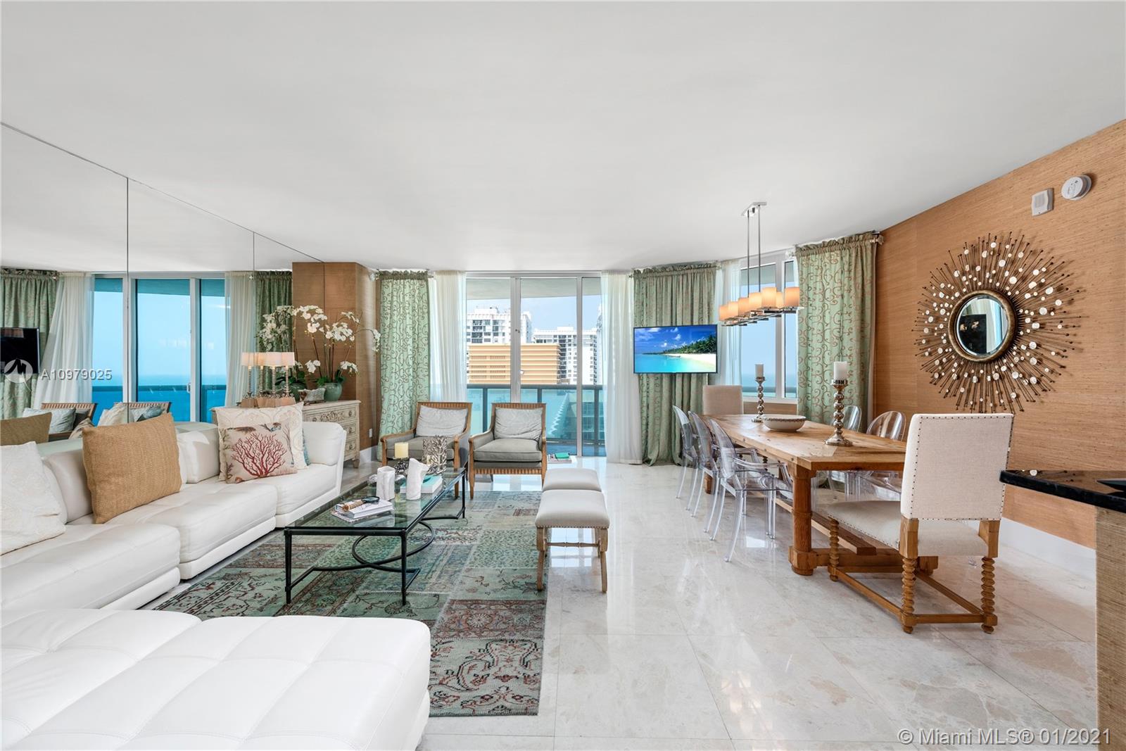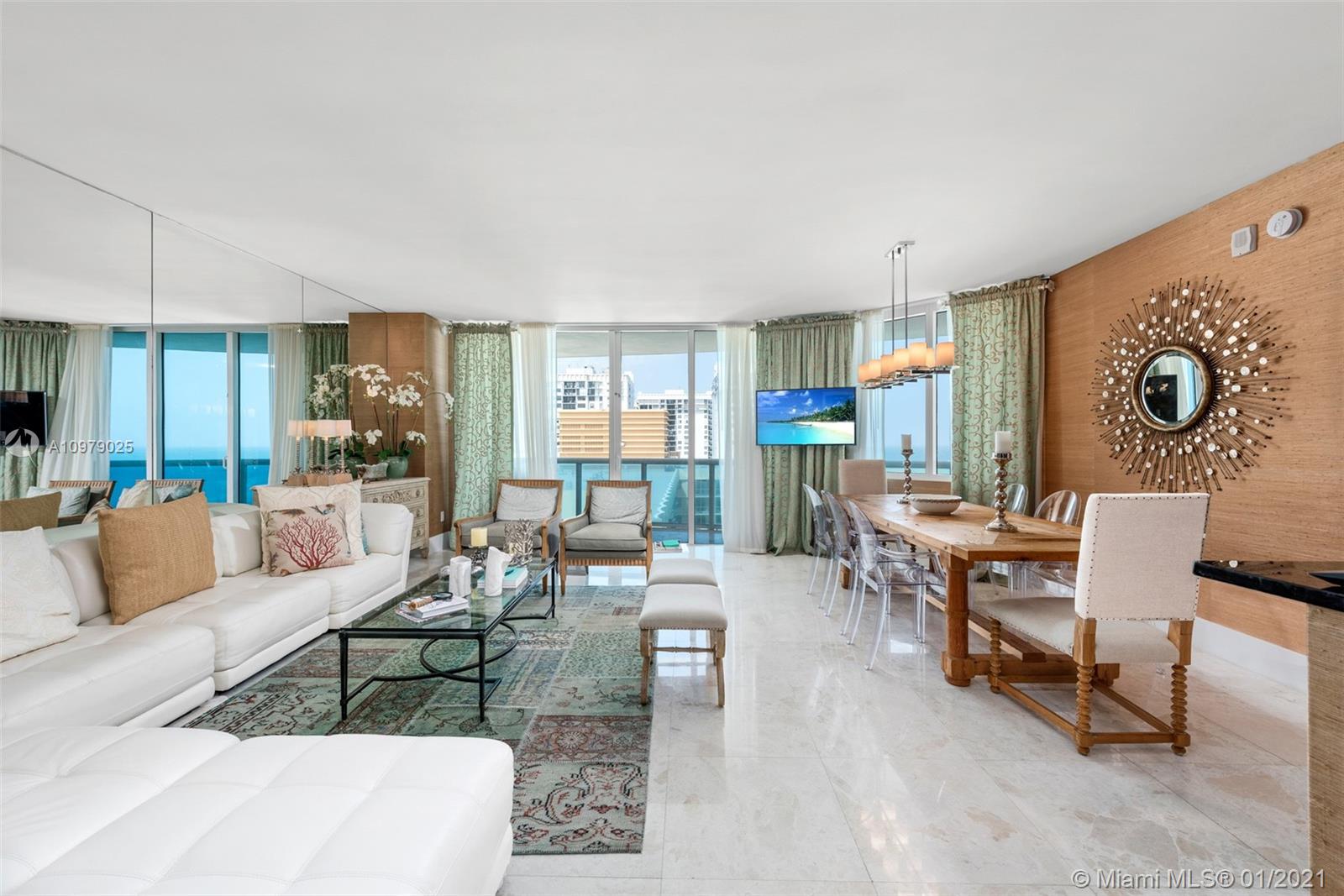 3 bedrooms, 3 baths plus powder room. Marble floors throughout entire apartment and balcony. Private elevator. High floor apartment with excellent ocean and intracoastal views. East, North and West views. Only used as a vacation home, spotless! Comes with a great bonus of 2 extra storage units!!! Trump Hollywood lifestyle. Fully furnished (some decor exclusions). Offers state of the art amenities including Gym, spa, wine cellar, library, theater, billiard room, party room, heated pool, tennis courts, basketball court. Brokers: See broker remarks.