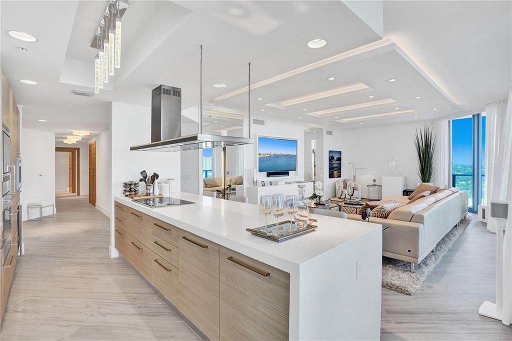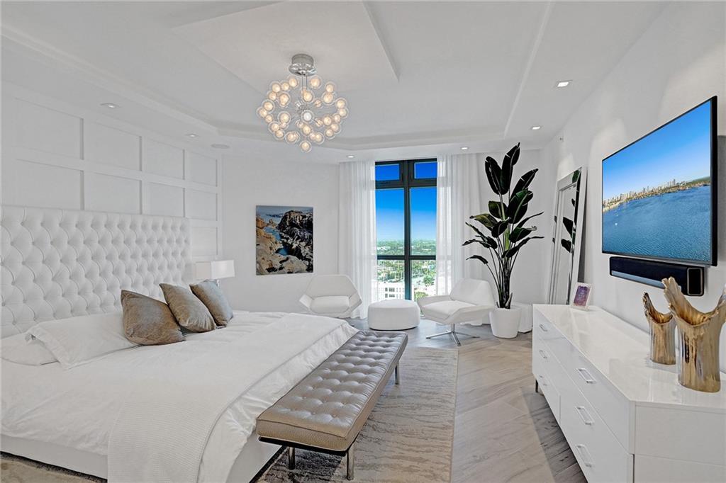 Magnificent fully furnished turnkey 3 bed, 3.5 bath + den decorated by award winning interior designer Steven G. Luxury finishes such as Porcelanosa tile, Italian doors, recessed/uplighting, motorized shades, custom feature walls, modern decor, art and lighting fixtures. Imported Italian kitchen cabinetry, Sub-Zero & Wolf appliances, wine cooler, Gaggenau coffee maker & quartz counters. Corner unit with glass railings for expansive skyline, bay & ocean views. Marble master bathroom with a soaker tub & floating vanity. Converted den/office for additional living area. Full service 112-slip marina & yacht club with berths for yachts up to 90 feet. 5-star Gated community with concierge, valet, fitness center, pool, steam room, kids area & clubroom. Pet friendly. *Exclude Sonos sound system*.