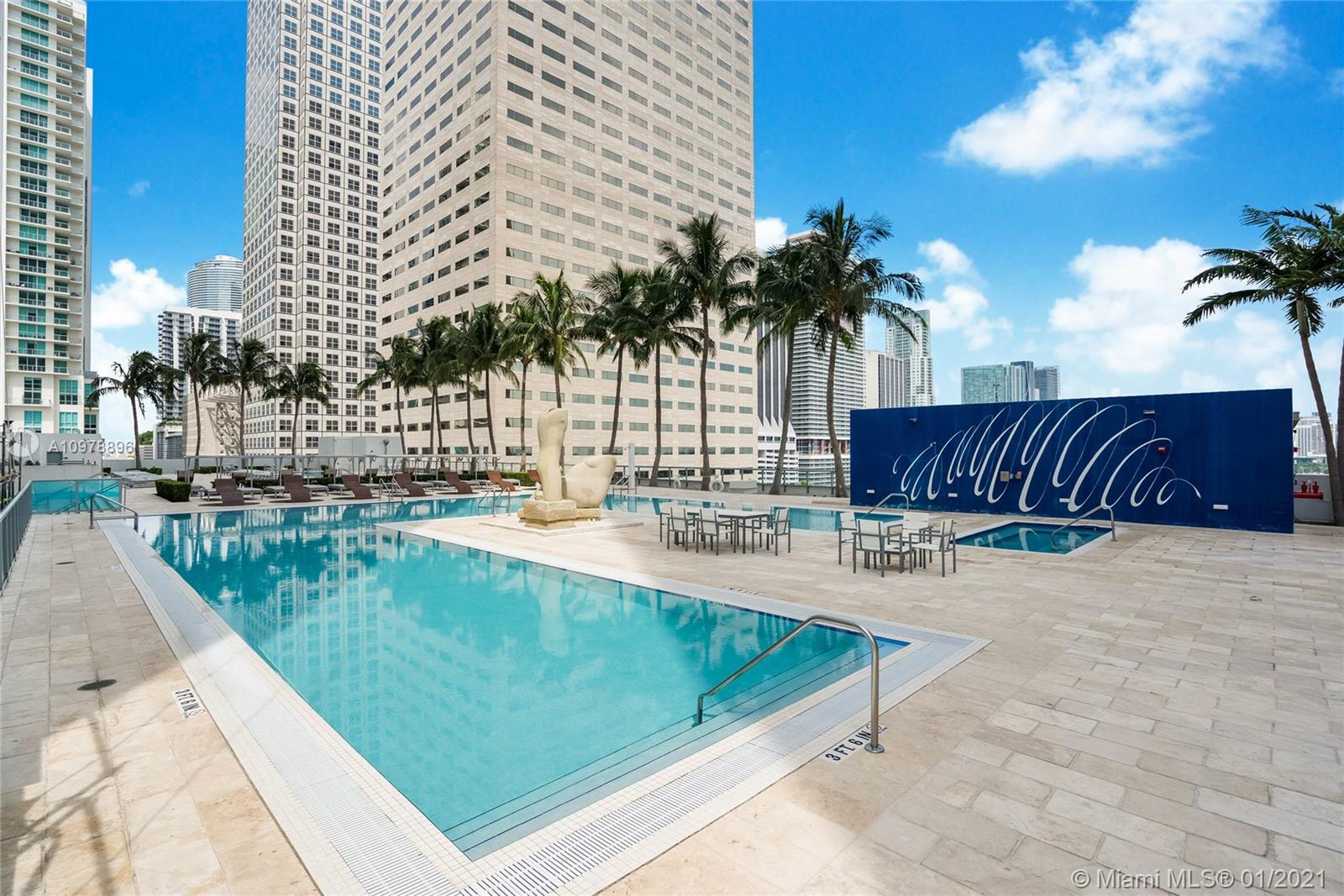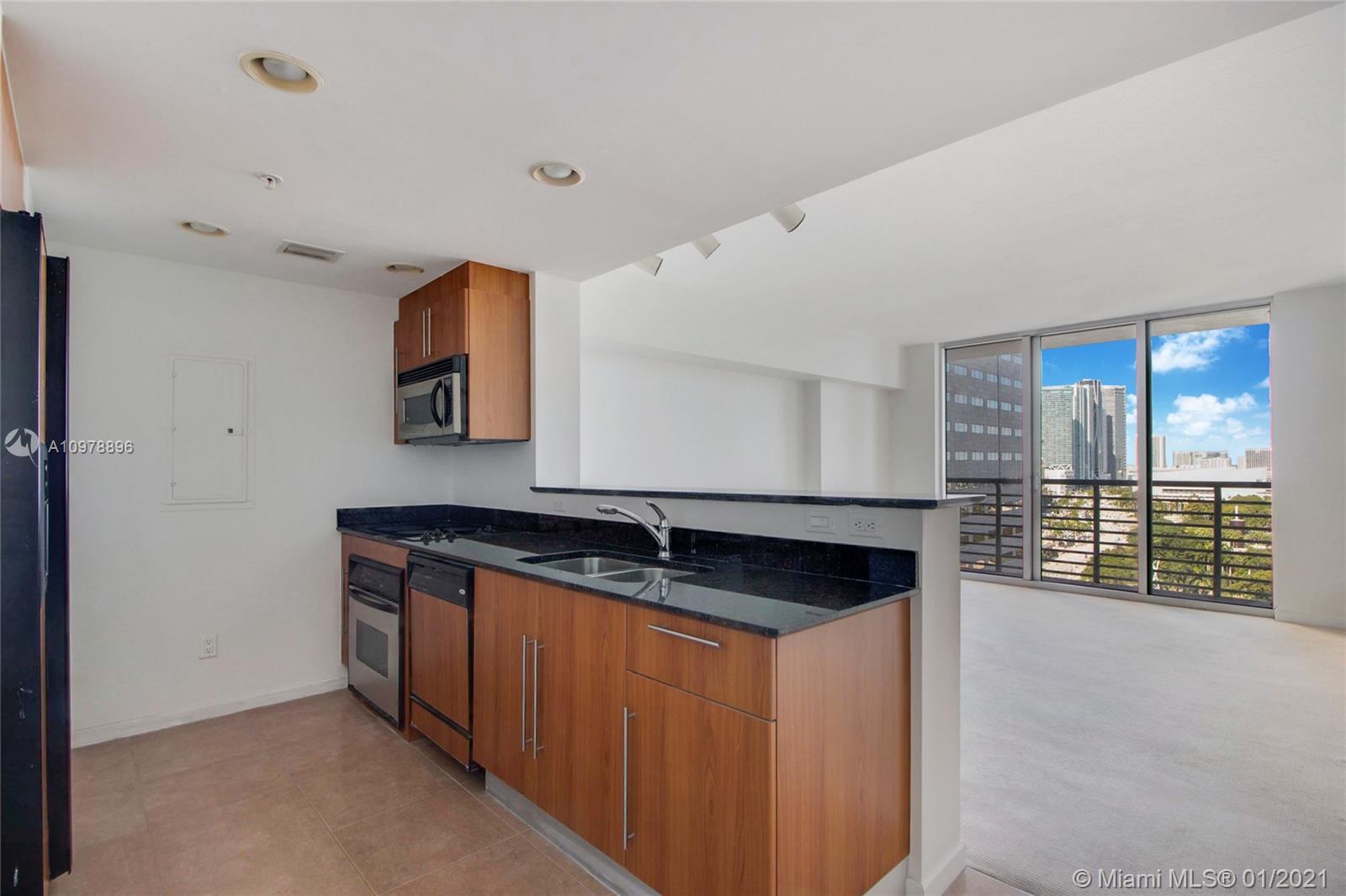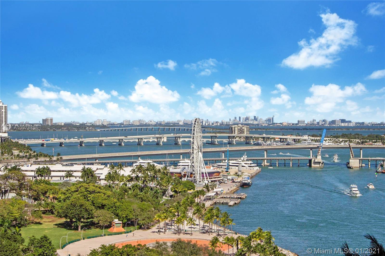 Stunning studio with breathtaking water views now available in One Miami (West Tower)! Lowest-priced studio boasts stainless appliances, granite countertops, modern bathroom w/tub, walk-in closet, stackable washer/dryer, extra storage locker, and stunning water and city views! One assigned covered parking. Unit is located near elevator for easy access to lobby or garage. Amenities include pool and gym. Low maintenance fee includes water, internet & cable. Come make this your home, vacation home or investment property!