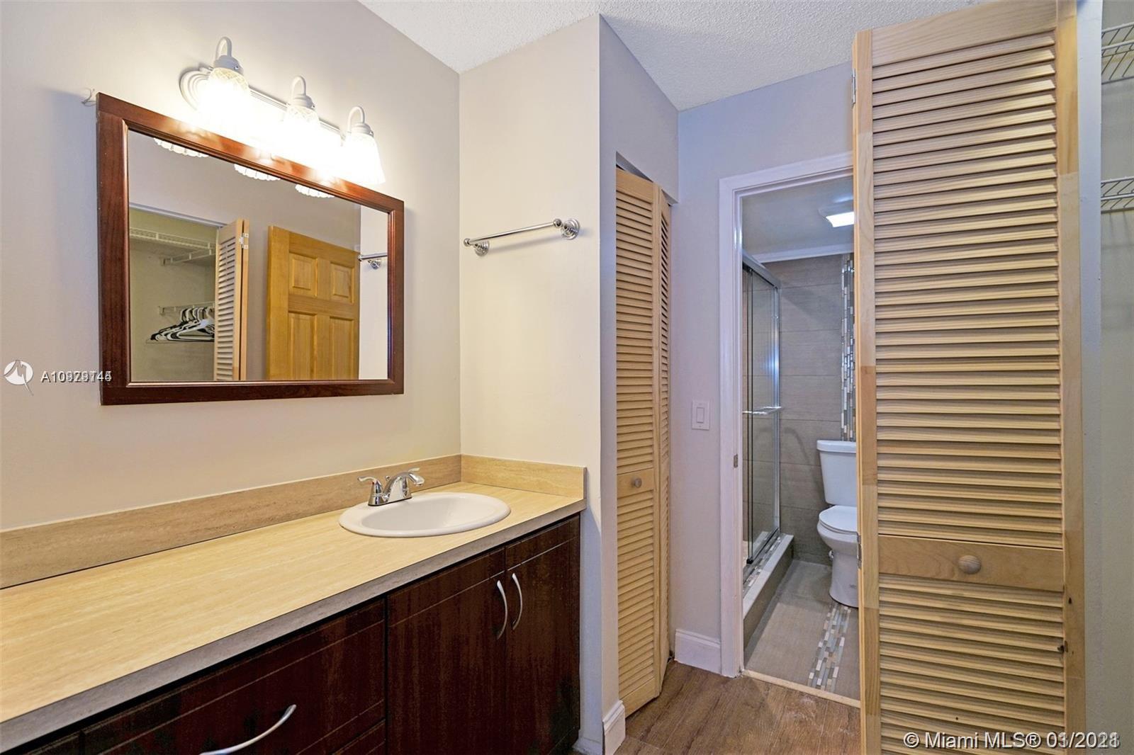 Investors welcomed! Ground floor 2 bedroom 2 bathroom with upgraded kitchen cabinets. Breakfast nook and a galley kitchen that leads to the dining room living room area. Tastefully remodeled master bathroom with shower glass doors. Enclosed patio, hurricane shutters, and modern appliances. Pool view and a peaceful view of the decorative and manicured landscaping. In the most exclusive 55 plus community in Pembroke Pines! Take pleasure resort style living community with million dollar clubhouse, bus transportation,2 fitness centers, 24 hrs. security, 8 swimming pools, tennis, movies, theater, billiards, pharmacy, café, golf, and much more