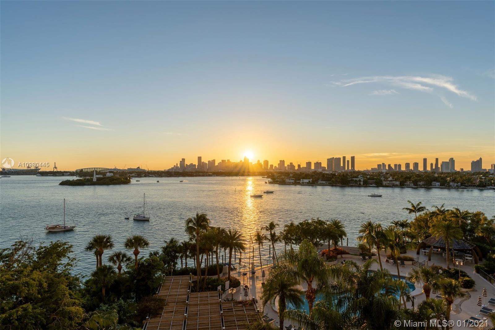 Rarely available 03 line at elegant 9 Island avenue in Belle Isle. Direct bay views and lots of light through floor to ceiling windows in every room. Split floor plan, large master bedroom with a huge walk-in closet; an eat-in kitchen and a separate dining area. 9 Island recently finished a vast renovation project and has a large gym, pool, spa, tennis courts, BBQ, free valet service for occupants and guests, concierge, etc. Boat docks are available for rent at very low cost. Building is located a short walk away from Sunset Harbor and Lincoln road, and right across the street from the Standard hotel. Cable/internet included in the HOA. Easy to show!