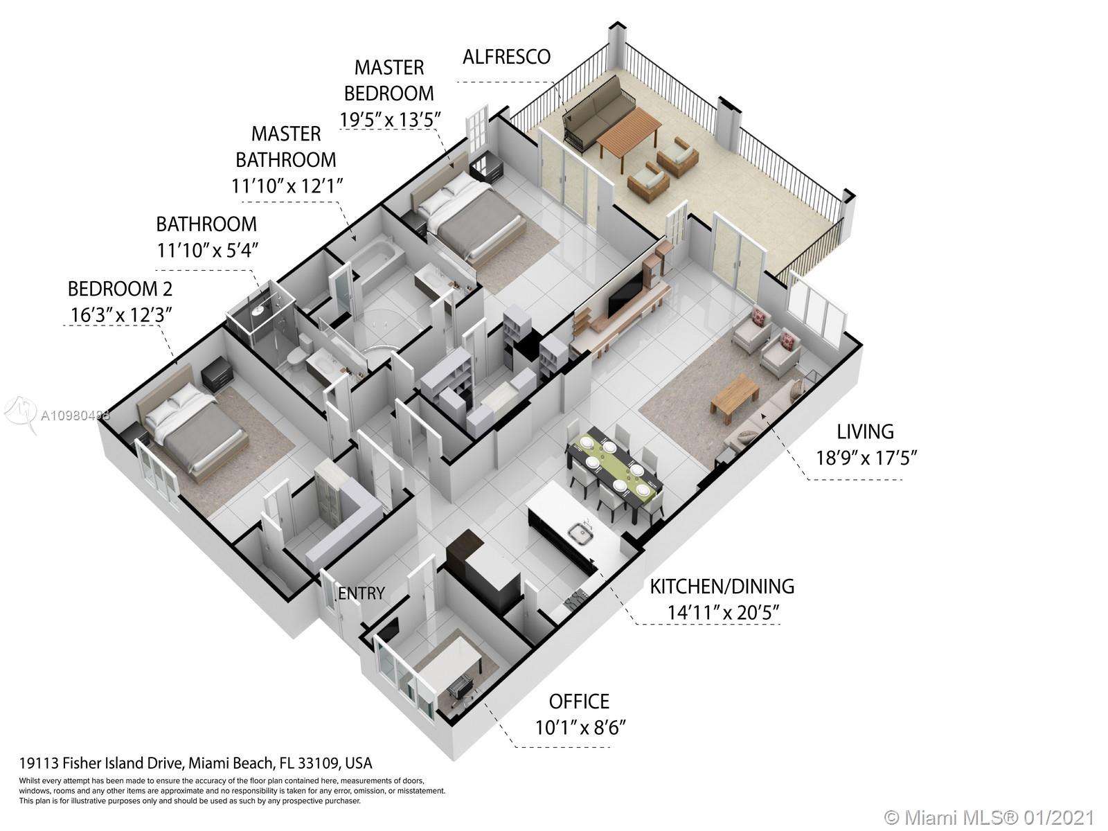 Modern renovation offered fully furnished w/ brand new contemporary décor. White, bright open floor plan w/ chic Italian kitchen and master bath. Desirable ground floor location next to the Beach Club, Spa, tennis courts and members’ beach. The ideal floor plan in this pied-a-mer for personal occupancy and short or long term rental. Boasts 1 garage parking space, storage room & golf cart. Perfect move-in condition - start enjoying the lifestyle of Fisher Island immediately.