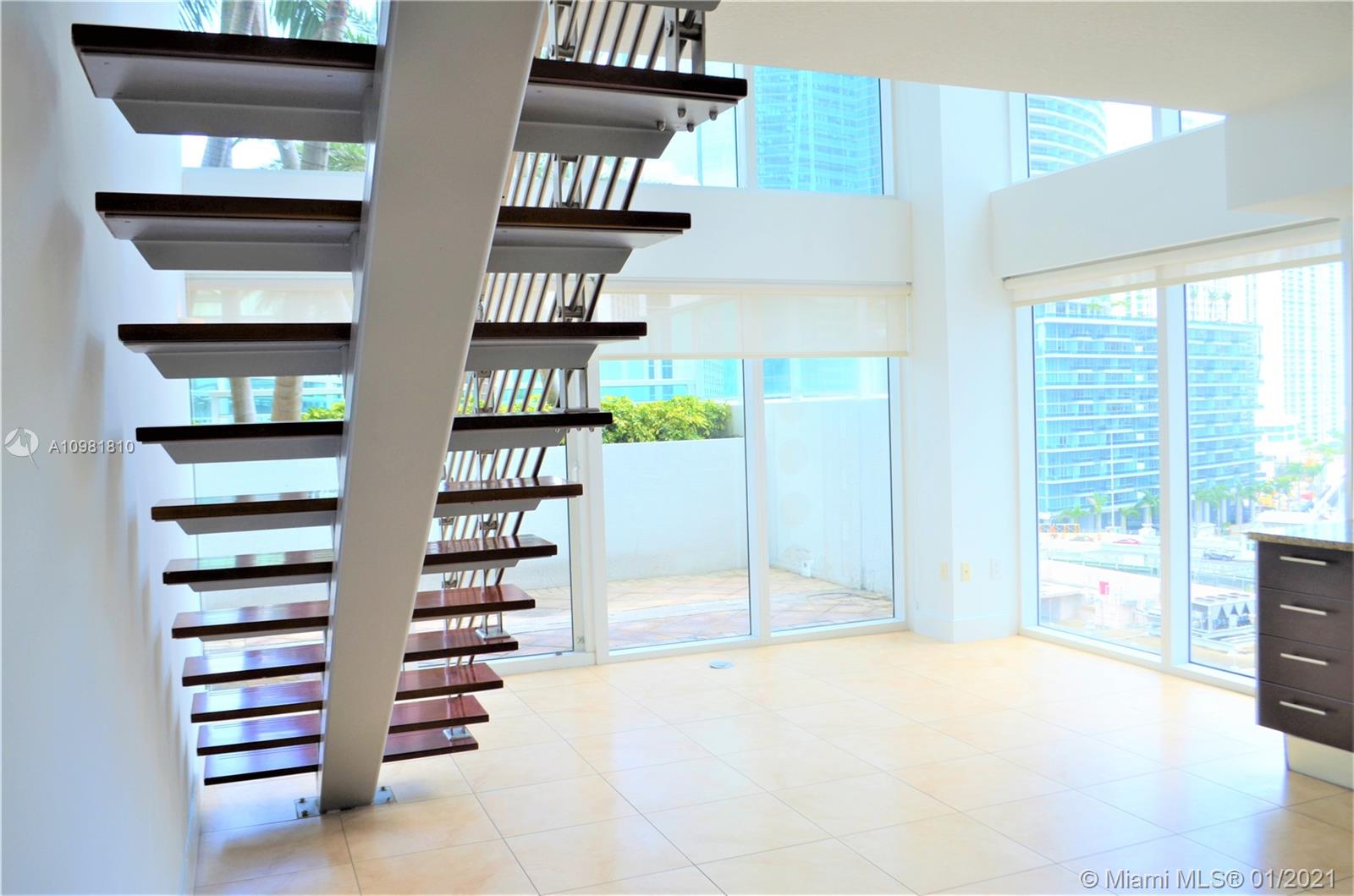 Magnificent 2/2 corner unit rarely available loft for Sale at Brickell on the River S Tower. Enjoy an oversized terrace with pool, city, river views and lots of natural light. Apartment features include high ceilings with customized roller shades, tile floors throughout, open kitchen with SS appliances, granite countertops, two beds/two baths (Master Bedroom open upstairs) , a private balcony on second bedroom (downstairs), washer and dryer. Cable, water, trash included in maintenance fee as well as One(1) Assigned parking Space PLUS One(1) Storage Space!! Amenities include: Two story fitness center, pool, spa, lounge and business areas, 24 hour security and much more!! This is the best value by far in the building and will not last!!