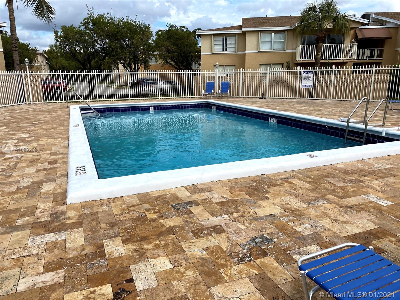Great property in one of the best areas of Miami, Doral. First floor, 2 bedroom, 2 bathrooms, open plan with living room, dining room, and kitchen. In-unit washer and dryer + share laundry for condo residents. 1 master bedroom with bathroom and walk-in closet. Additional linen closet. AC is only over 2 years old. The apartment only shares one wall. Very clear with a lot of light. The kitchen has been just remodeled with modern cabinets and a granite countertop. New floors throughout. 2 parking spaces very close to the unit, plus a lot of guest parking. Nice patio big enough for BBQ and entertainment. Gate with security guard and patrols, 24 hrs. Community pool, basket, and tennis courts. A + schools. There's an assessment that seller will pay at closing. Property rents for $1700 and more.