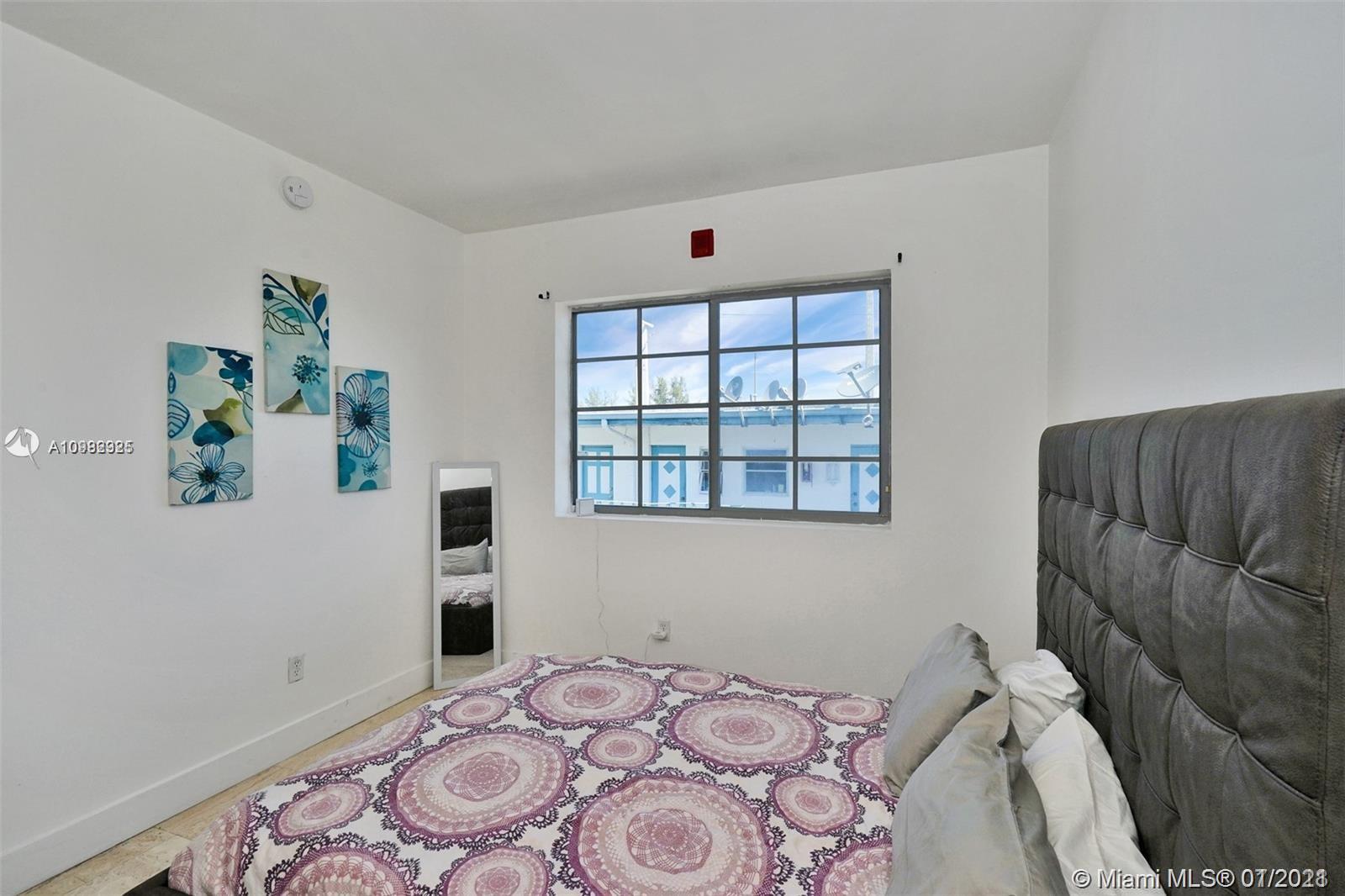 South Beach Get-a-way Pied a Terre! Large and bright 1 Bedroom, 1 Bathroom nestled on quiet Palm-Tree-Lined Street of South Beach! Granite and Stainless Steel Kitchen, Washer Dryer in unit, Walk to the beach, restaurants and nightlife! 5 Steps to Flamingo Park tennis courts, swimming pool, gym, and dog park! Fenced courtyard and secured entry! tenant occupied rent is $1250