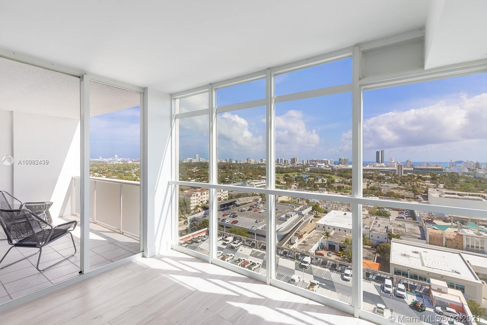 Extra large 1/1.5 delivers panoramic ocean and South Beach views. Make this an ideal winter escape or investment in your future. Chic renovation just completed + ready for a fast close. Floor to ceiling glass in every room to capture the Miami sunshine + vistas. Brand new - 2021 - porcelain plank floors, quartz counters, bathroom fixtures, lighting + stainless steel appliances. Live near the top of Sunset Harbour for $3078/ month with 20% down or $3480/ month with 10% down . Step out of the doorman lobby and be surrounded by the best restaurants, fitness boutiques, marina and water activities. Stable finances, low turnover building with resort-style pool deck, health club, sauna + hot tub. Walkable, livable and healthy - fulfill your New year's Resolutions all at once.