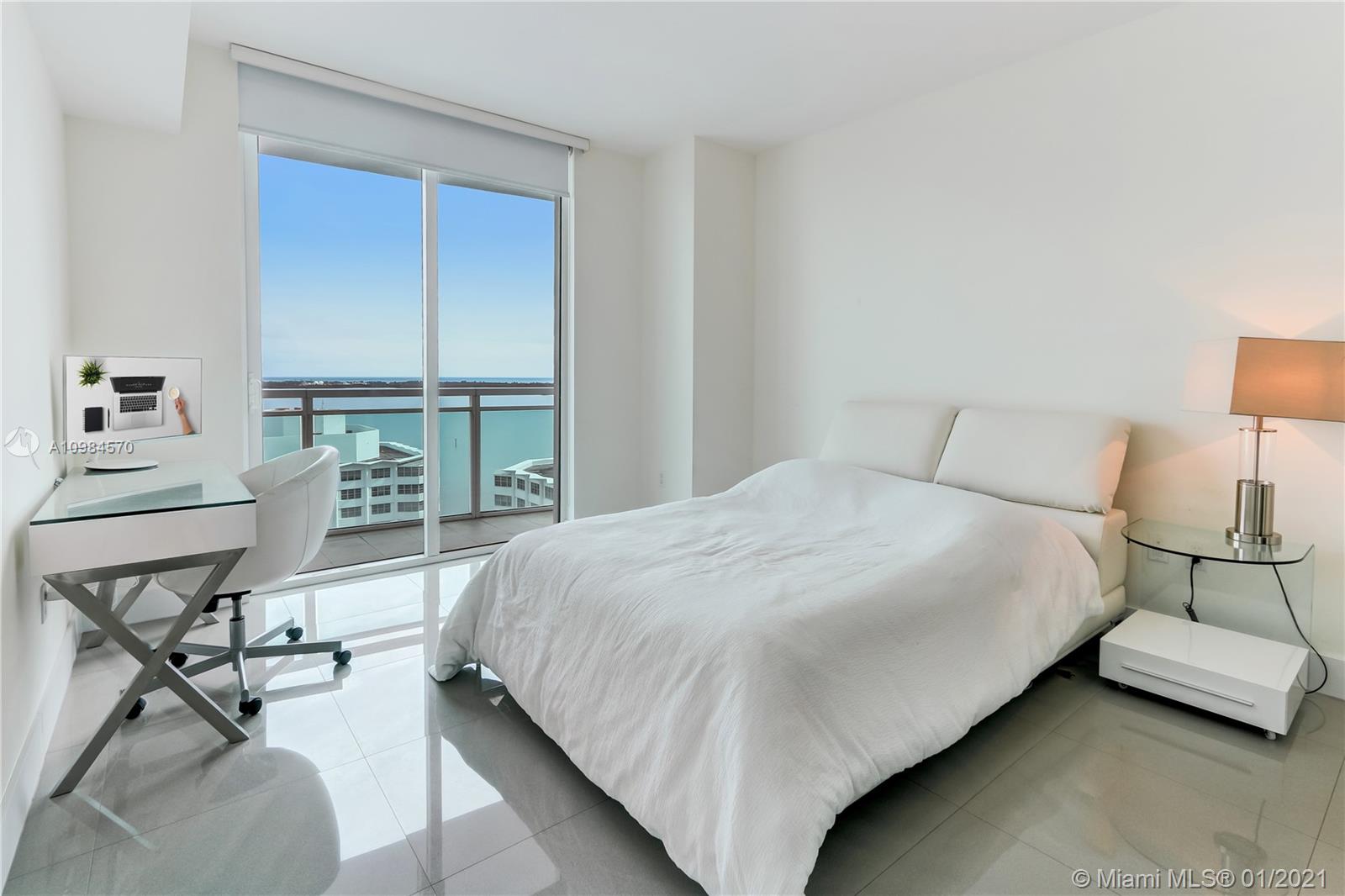 Great and large corner unit, 2 bedrooms and 2.5 baths with high ceilings and porcelain floors. Enjoy the wonderful Ocean View and the City Skyline through all the living areas. Spectacular amenities, 2 heated pools with cabanas, fitness center, steam room, business center, party room w/kitchen, valet parking and more. Building is centrally located in Brickell, walking distance from great restaurants, entertainment areas, Brickell City Center and financial center. Just minutes away from the Design District, Wynwood, and The Beaches.