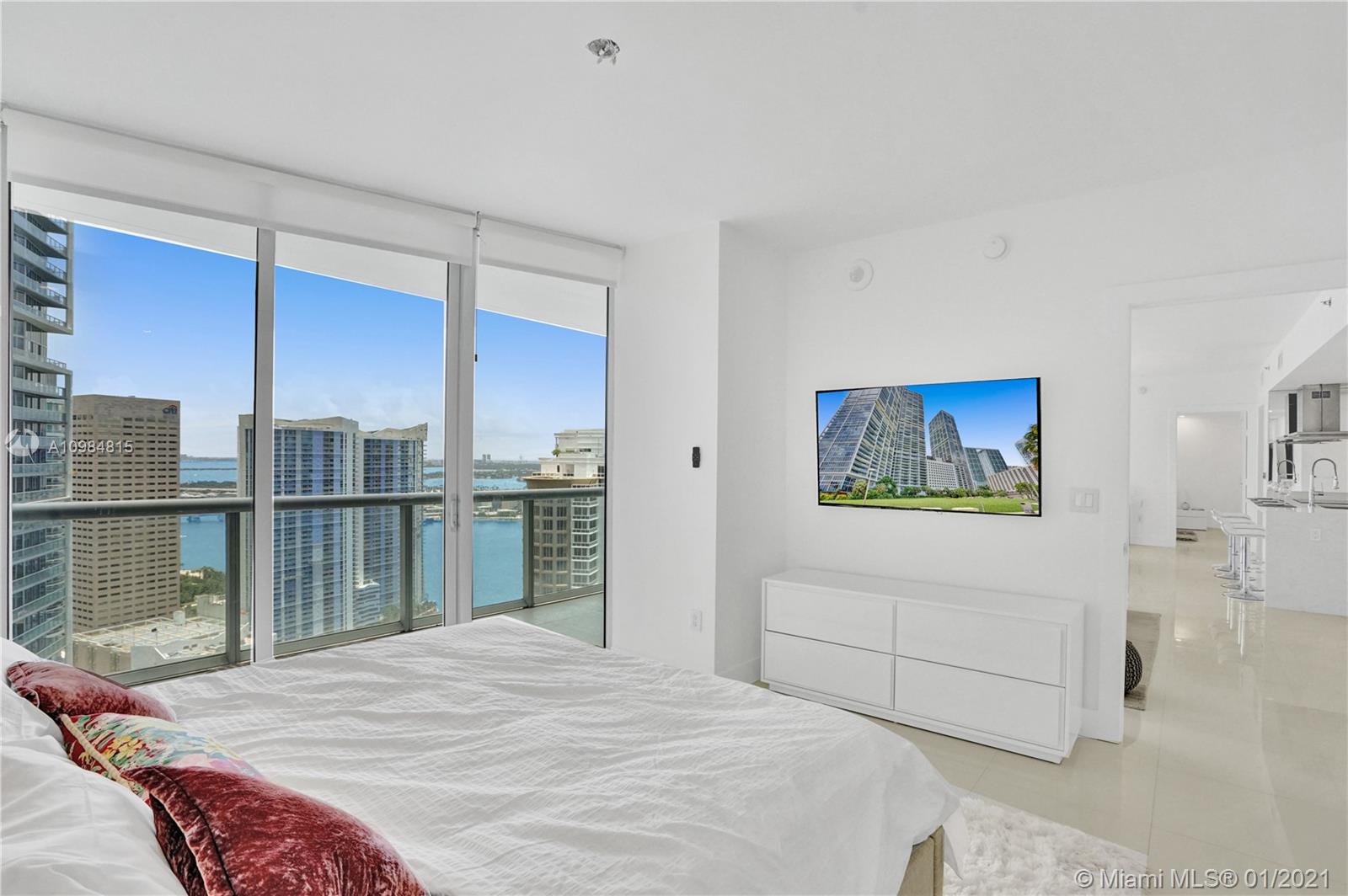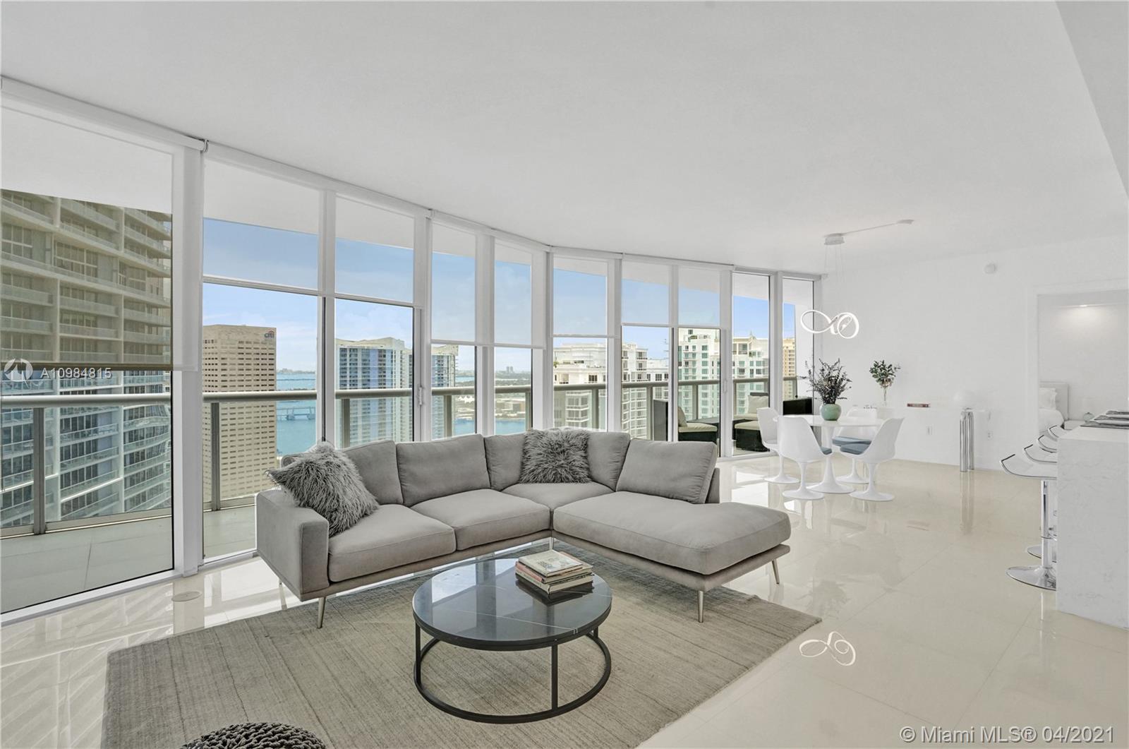 Enjoy this unique high end designer unit with stunning water views from every room. This brand new updated 2/2 unit with modern elegant furnishings is waiting you with all the details that make your life comfortable. It has a fully equipped new kitchen, designer cabinets, televisions, towels, bedding, etc. The famous Icon Brickell's resort-style 5-star amenities include a 300-foot long pool, 50-person hot tub, 28,000-square-foot spa and fitness center, movie theater, game room, poolside food and beverage service cafe, 24 hour full service concierge and valet parking. Unit is rented until September 30, 2021 for $ 4350. Price includes furniture and full equipment. Just bring your toothbrush.