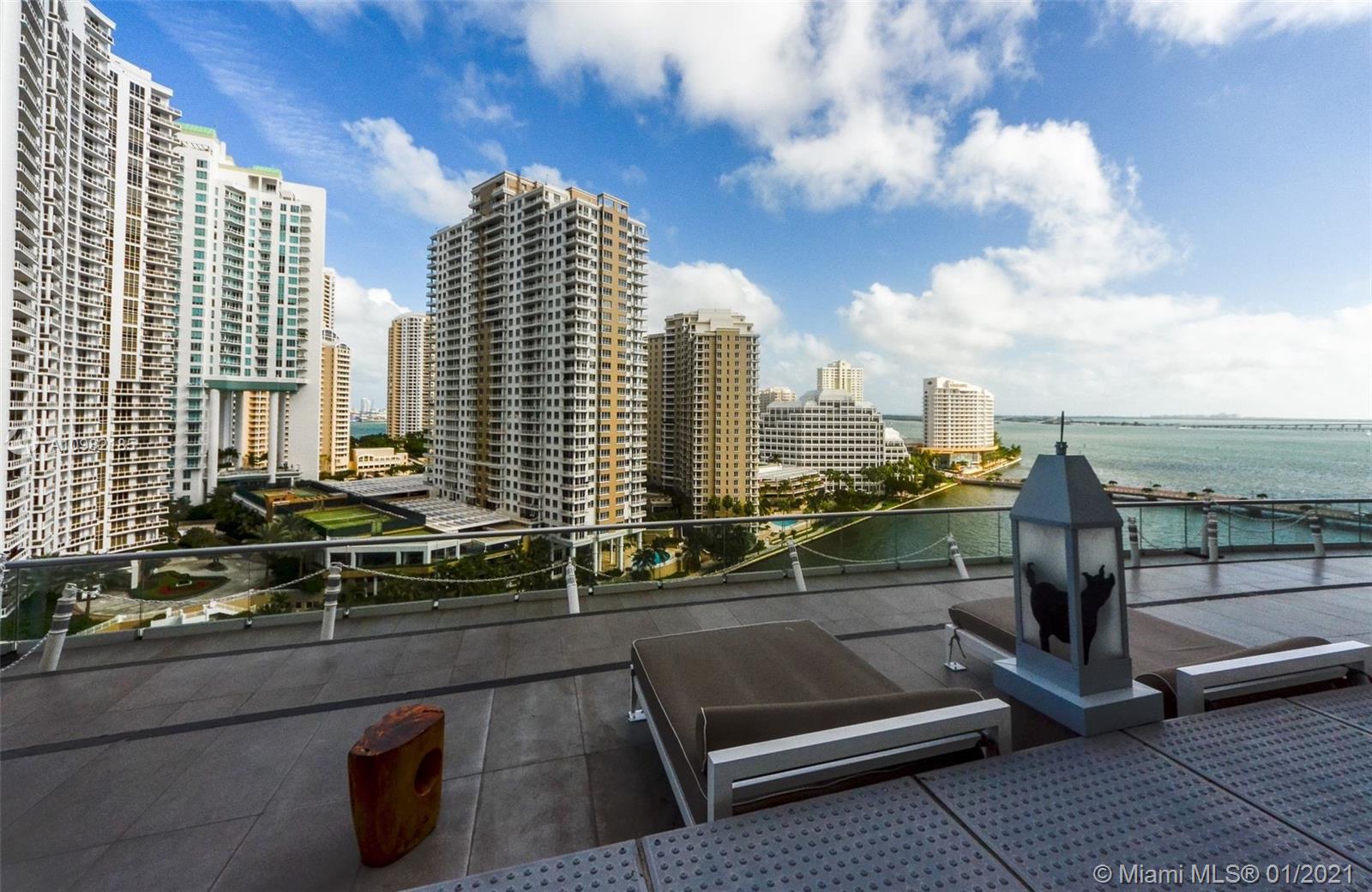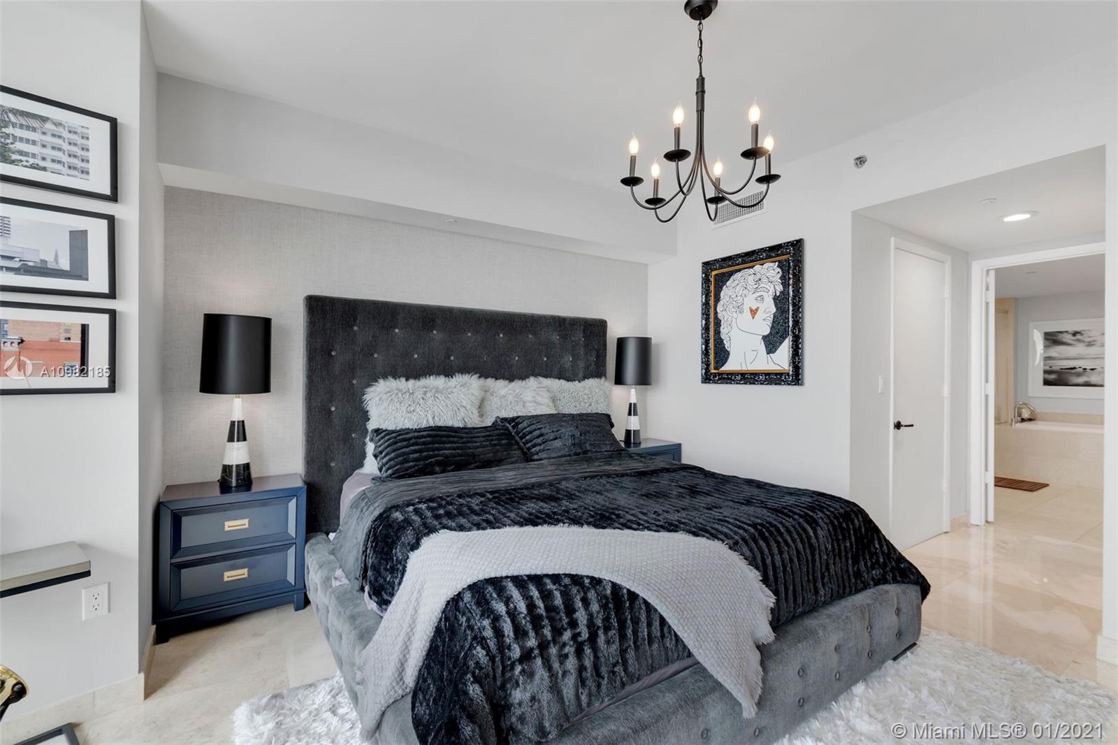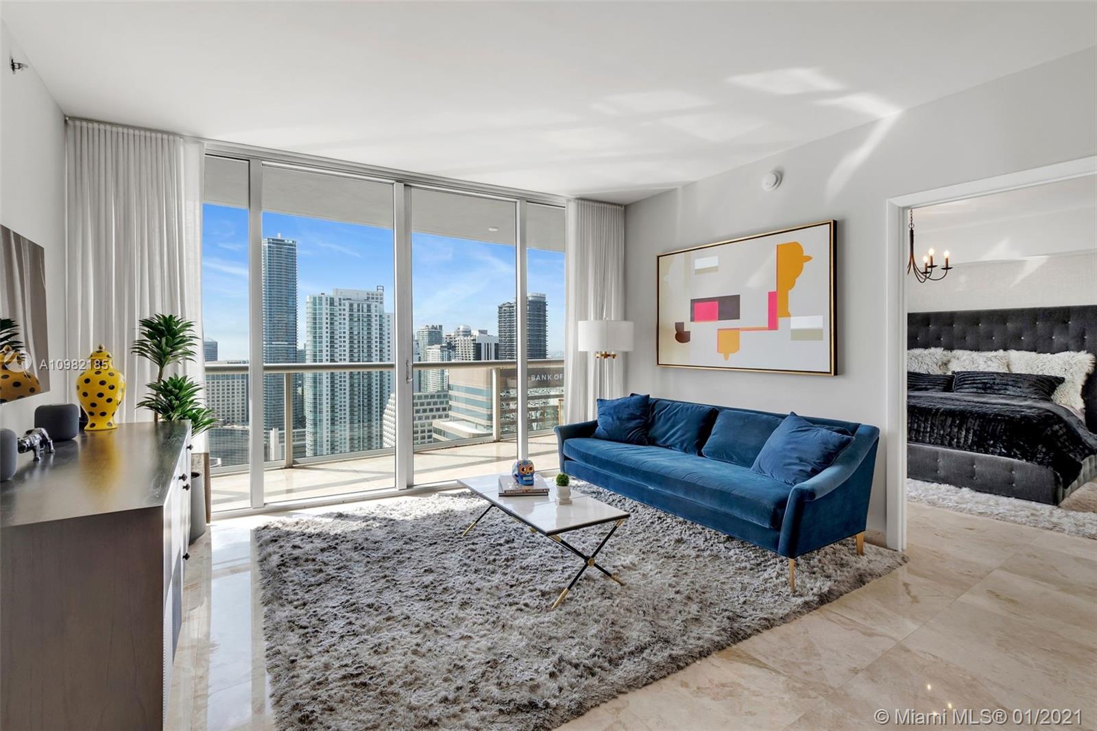 Miami living at its finest in the most sought-after 03 line at Icon Brickell Tower II. Enjoy unobstructed ocean views from all rooms as southeastern light fills this high-floor 2 bed 2 bath + den 1518 SqFt home in the sky. Split floor plan with spacious main suite with spa-like bathroom & custom closets, second bed w/ en-suite & open additional den. Enjoy sunrises & sunsets through floor-to-ceiling windows & an expansive glass-enclosed balcony. Offered fully furnished with tasteful upscale transitional design décor & neutral marble tile throughout. Updates include full-size w/d, remote bedroom shades & chic fixtures throughout. Building offers hotel-like amenities such as Olympic-size pool, theater, valet, concierge, spa & fitness center w/ world-renewed dining just downstairs.