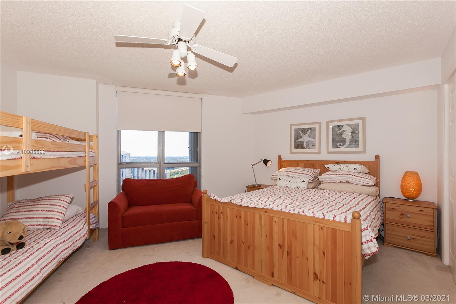 Enjoy the most beautiful sunsets from your spectacular 33rd floor w/ panoramic views of the intracoastal, exclusive Turnberry golf course, boats, & marina! Full of natural light & spacious master bedroom & bath w/separate shower & tub. 2nd bedroom is so large it can become a 2nd master w/ its own private bathroom. Can be rented during first year of ownership. State of the art gym. Meeting & game rooms for you to enjoy. Amenities are: a marina, 7 tennis courts, tennis pro, mini market, hairdressers, restaurant, 1 basketball court, picket court and dog park. Wonderful walkway along the bay.