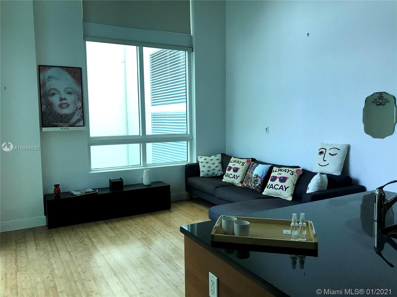 Cozy 1 bedroom unit with 13 ft ceilings. Open gourmet kitchen with granite counter tops. Stainless steel appliances. Washer/dryer in the unit. Building features 2 pools, 2 story gym, private movie theatre, cyber library, on site management, convenient store, dental office ,beauty salon and 24 hour security. Parking space conveniently located on unit floor. Building is located across the street from Margarete Pace park, with tennis courts, playground, basketball courts and dog park. Close to supermarkets and restaurants, American Airlines Arena. Minutes away from major highways and public transportation. Video available upon request. Priced to sell. Building requires for all visitors to register. Please send a text message to LA to schedule your private showing.