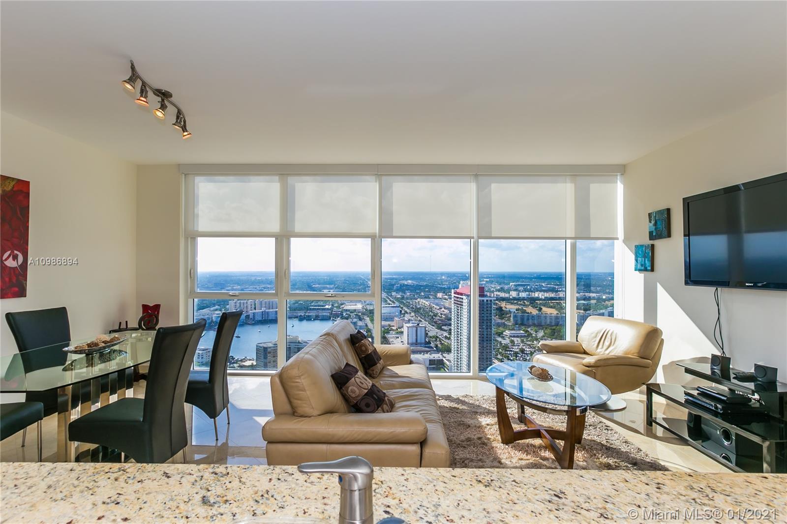 Beautiful one bedroom and one bath unit with marble floors throughout, model F with gorgeous City and Intracoastals views from the 43rd floor. This exquisite unit offers an Euro style kitchen with stainless steel appliances, granite counter tops. Amenities include state of the art fitness center, 3 resort style pools, full time concierge , beach service, covered parking, 24 hr security and valet parking.