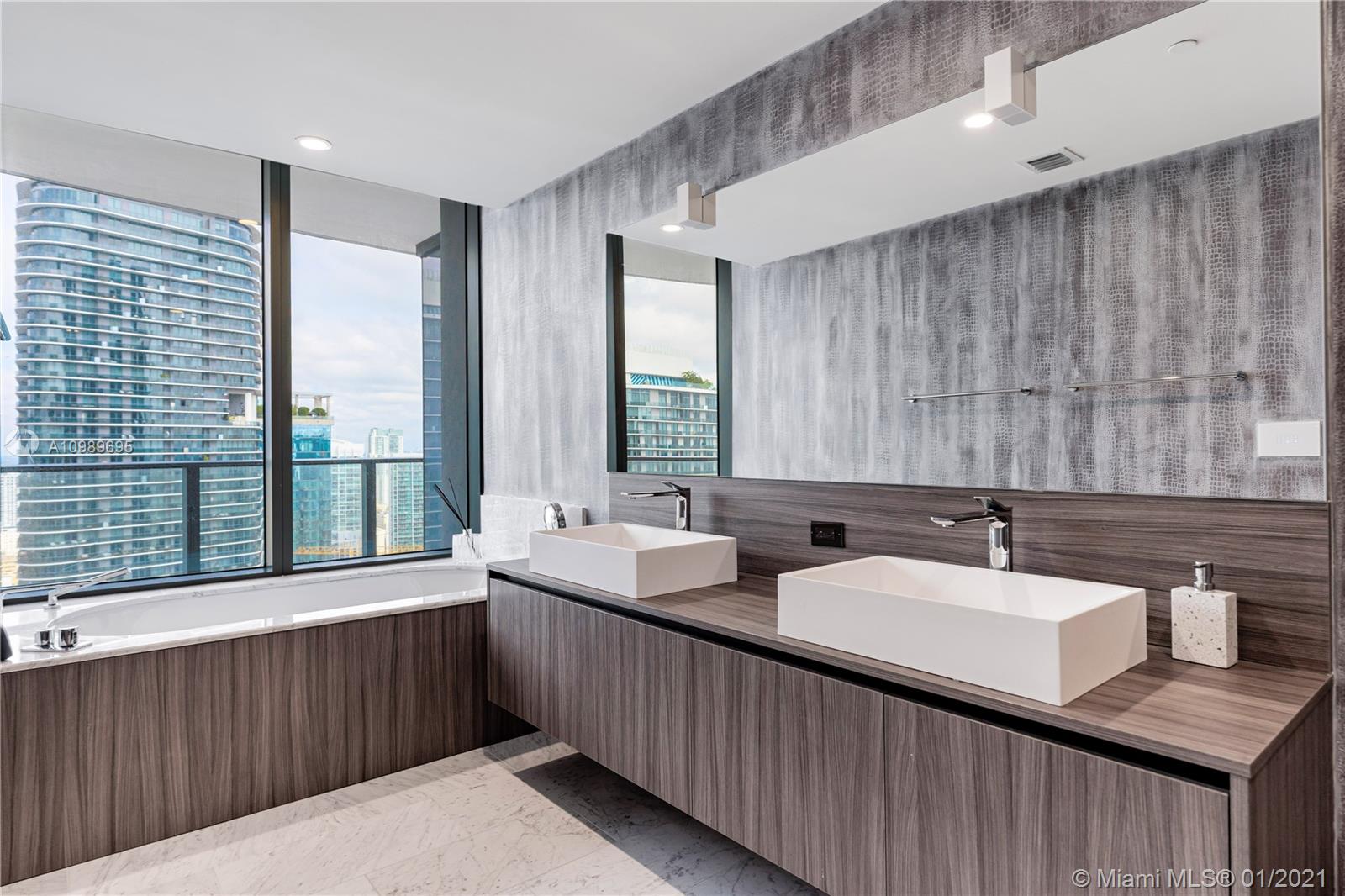 Awe-Inspiring Views w/Smooth, Smart & Sophisticated professional interior design. This CORNER unit offers the finest, unparalleled, unobstructed N & W vistas. See sunrise over Miami Beach thru Sunsets. It took 10 mths and $100K to complete this showcase Designer unit with venetian plaster accent walls, open kitchen w/ Miele high-end appliances, Italian finishes, masterpieces from Ugo Colombo, upgraded doors, smart LED lighting system, remote control blinds, add'l DEN/OFFICE, All done to be a Forever Home. BUT, a joyful new baby brings change. Let this Home be your Change. Flat Iron is your #1 Luxury destination; Concierge Services, Massage, Lap pool, Sky Club Pool & Sky Spa, fitness center, Business Lounge, Theater, Cafes, Kids Pool & Playroom, 2 parking spaces. Let's Live in Luxury.