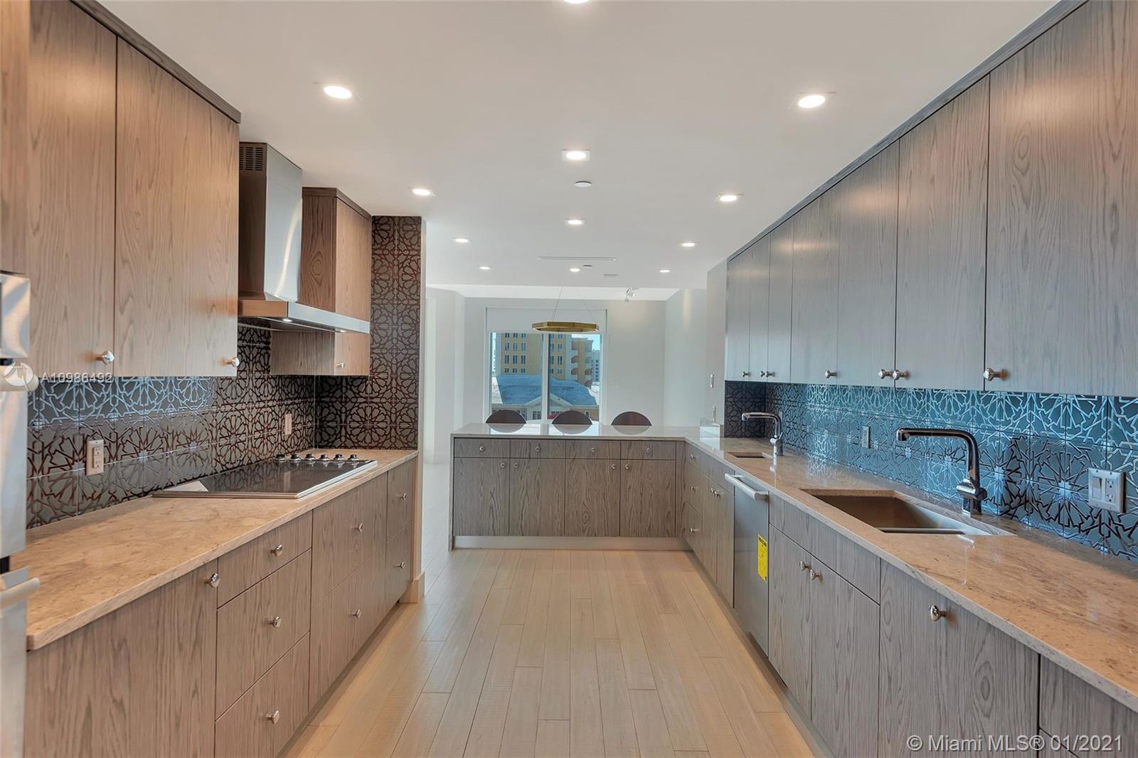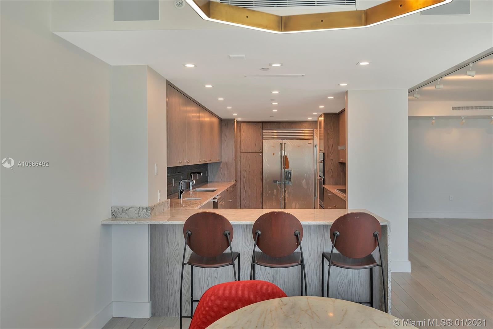 Move right into this beautifully completely updated 3/4.5 flow through high floor unit at Grand Bay Tower. This unit features the highest quality materials throughout. New kitchen with top of the line appliances including Sub Zero and Viking. Surround system throughout the apartment with Lutron LED lights and remote shades. Unit has white washed wood flooring throughout with marble bathrooms. All the electrical, plumbing, and AC systems have been redone. Soundproofing has also been added to the bedroom walls for extra privacy. This unit has Bay, Ocean, and City Views. Now includes a lobby level guest/staff suite.