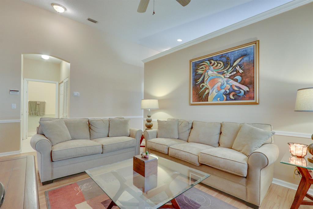 Immaculate and ready to move into. Spacious end unit located at the end of the street. Split floor plan has two bedrooms with a den that could easily be converted to a third bedroom. Large living and dining room. Kitchen has a pass through to the dining room, lots of cabinets, a pantry and room for a small table. The master has two large closets. Inside washer and dryer. Screened, covered patio. Andros Isle is a desirable community close to the turnpike, restaurants, and shopping. The community has lots of amenities including clubhouse, heated pool and much more. Square footage in tax records is incorrect. Correct square footage under air is 1517 SF. All measurements are approximate.