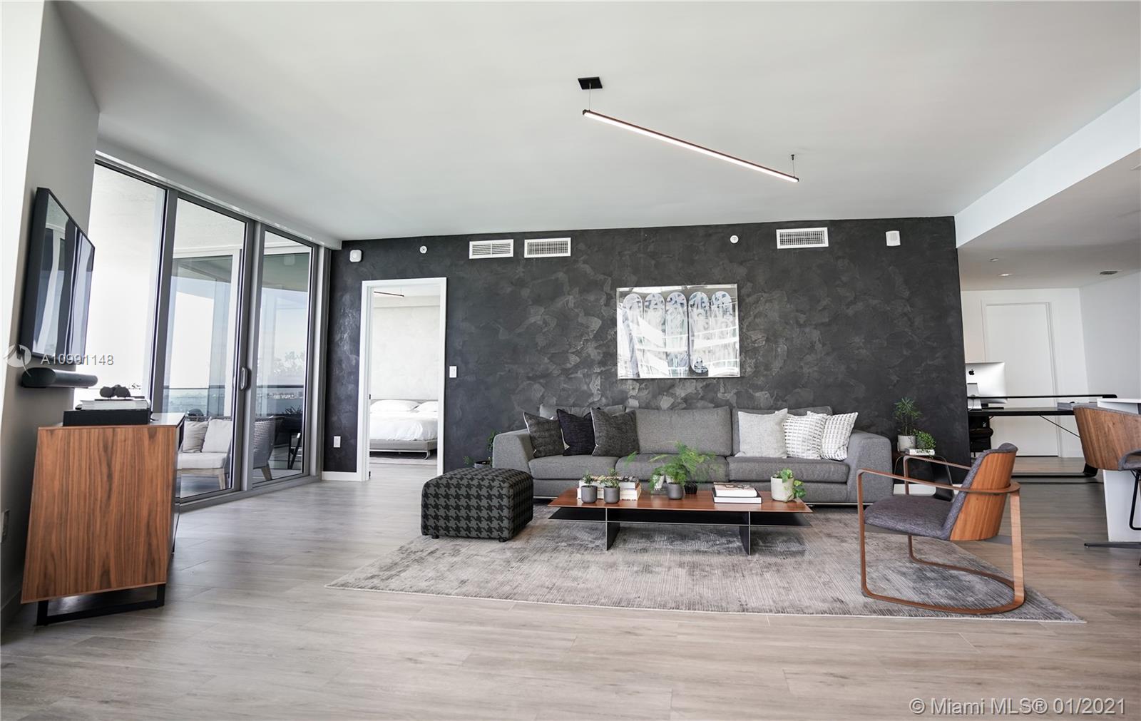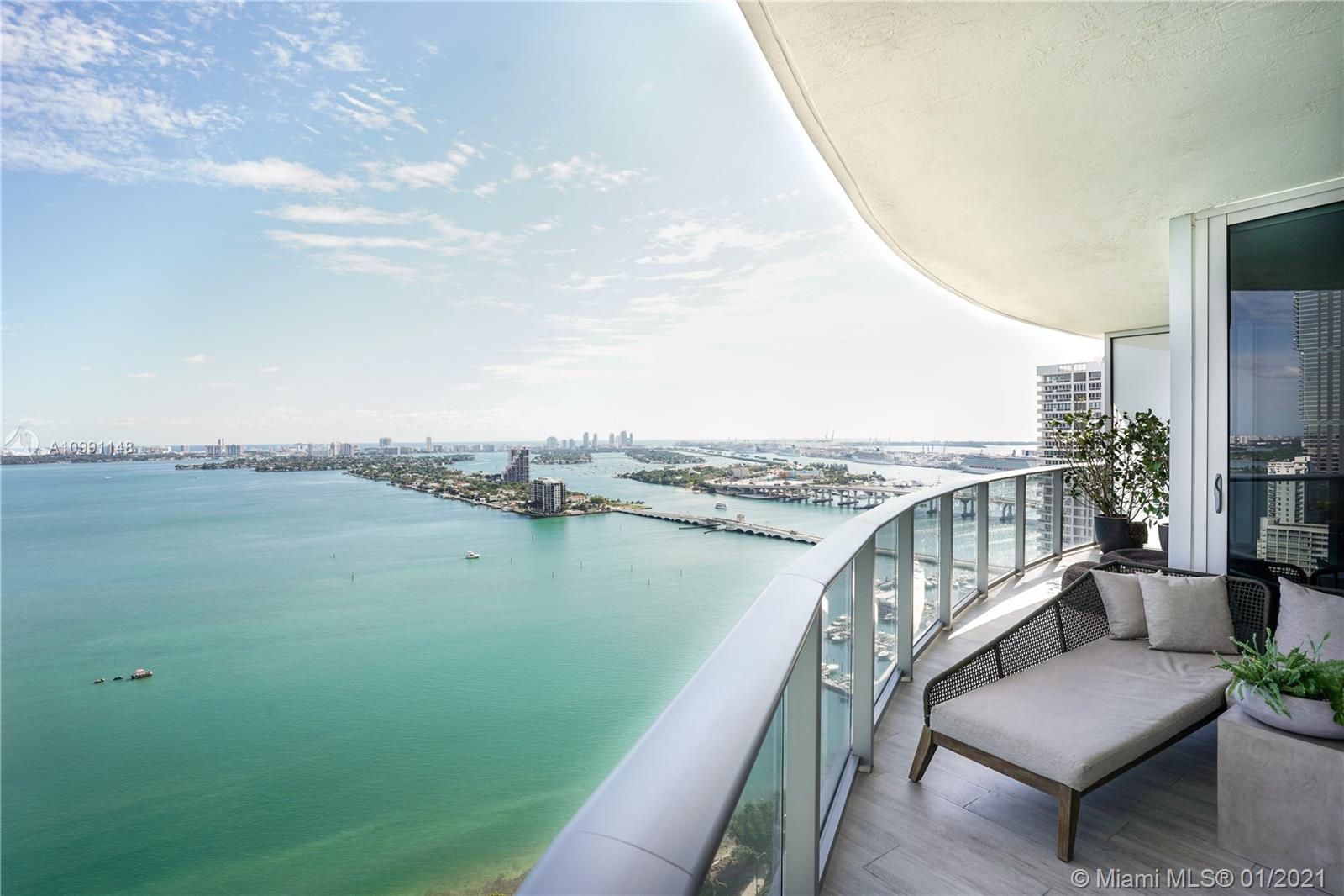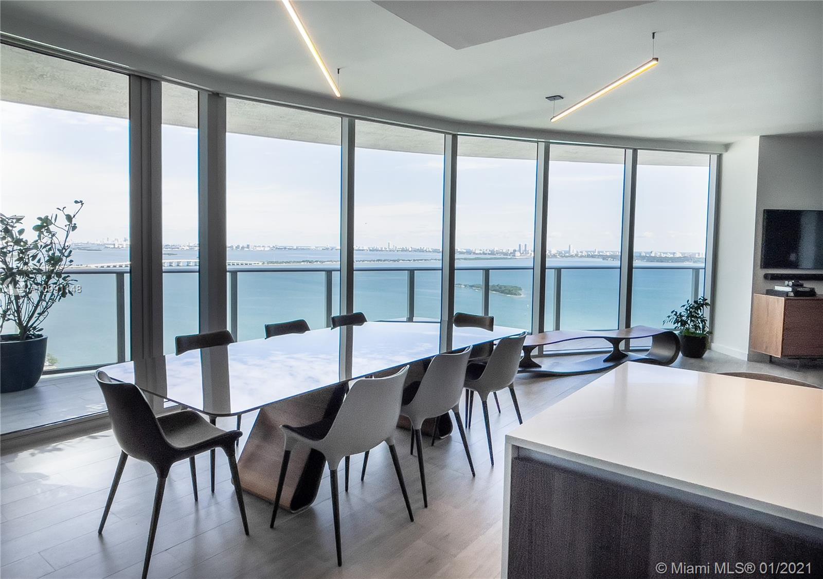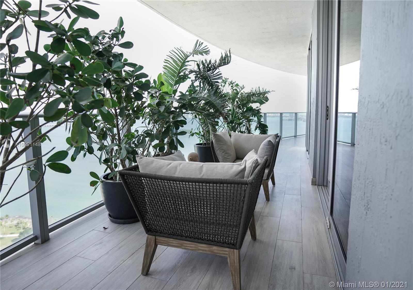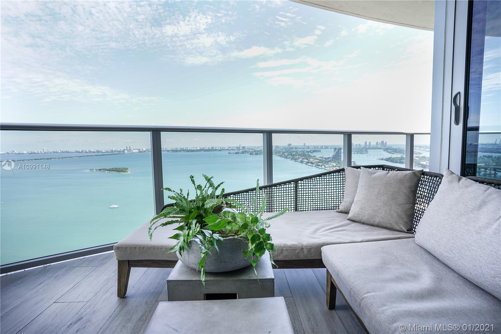 Step into a luxurious open floor plan from your private elevator entrance and experience a modern, unique and expertly decorated 3 bedroom condo with expansive, direct bay views from your wrap around balcony. This unit is sold furnished so just bring your clothes to hang in the closets and enjoy your new home. Aria on the Bay is one of the premiere condo buildings in Miami, located in the heart of the bustling city. The views are some of the best out there, with endless, serene views of the ocean and the world acclaimed, exciting panoramas of the Miami skyline.