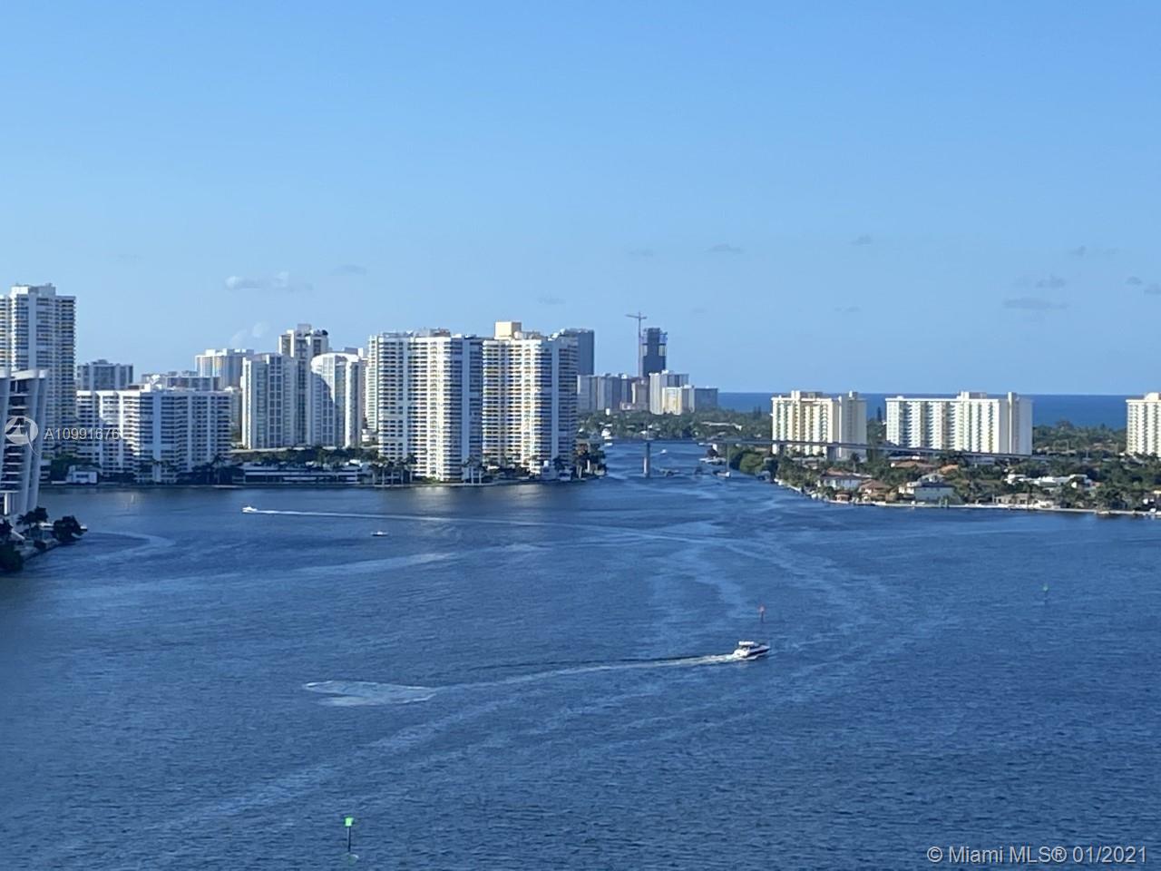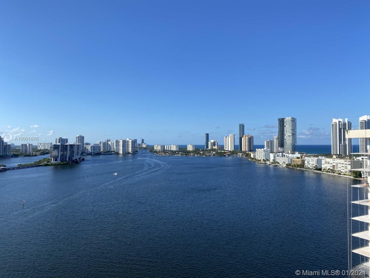 Corner Penthouse with the best Intracoastal views in Sunny Isles Beach. Furnished and ready to move-in. 3 bedroom, 3 bath, open concept living area, water views from each window. Large wrap around terrace, sitting right on the water. Watch the manatees, dolphins and boats go by. Beautiful vistas day and night! Very large bedrooms , center bedroom fits 2 queen beds and lots of furniture. Master bedroom is huge, master bathroom suite has shower, whirlpool tub, dressing table and large linen closet. Lots of closet and storage space; 4 closets and 3 very big walk-in closets. Washer/dryer in unit, built in bar, spectacular views from separate dining room, eat-in kitchen, and breakfast bar with seating. Move-in ready. Hurricane Shutters. Qualified buyers only.