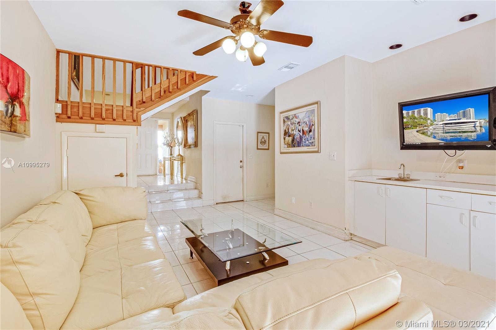 Where in Aventura can you find a 4 bdrm UNDER $550!!! Come see this 3 story home... WITH an ELEVATOR for your convenience!!! Big open entryway leads you into the 1st floor family room...great for watching tv & hanging out! Bedroom w/ full bath on 1st floor can also be used for office/playroom! Larger patio in back w/ grass area for kids to play or walking your dog. Wood staircase takes you up to the 2nd floor w/ enormous living/dining area...newer built-ins with bar for entertaining guests! Huge eat-in kitchen with island, newer dishwasher & S/S appliances. Have your morning coffee on the kitchen balcony too! Third floor extra large Master bedroom with 2 closets! Walk to the Marina, PO, shops, dining, dog park. Near beaches, airport, Aventura Mall, new Soffer HS & more!