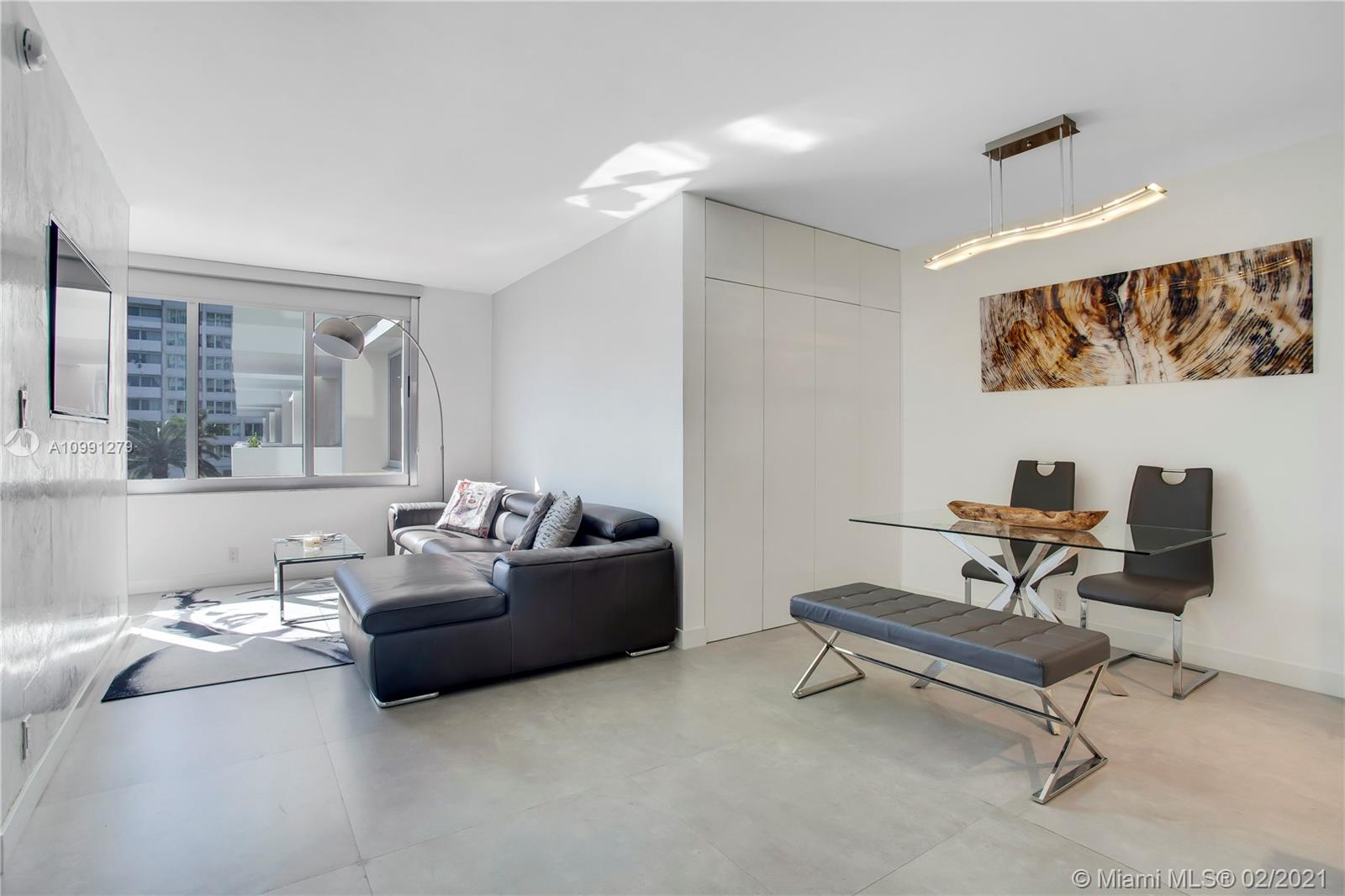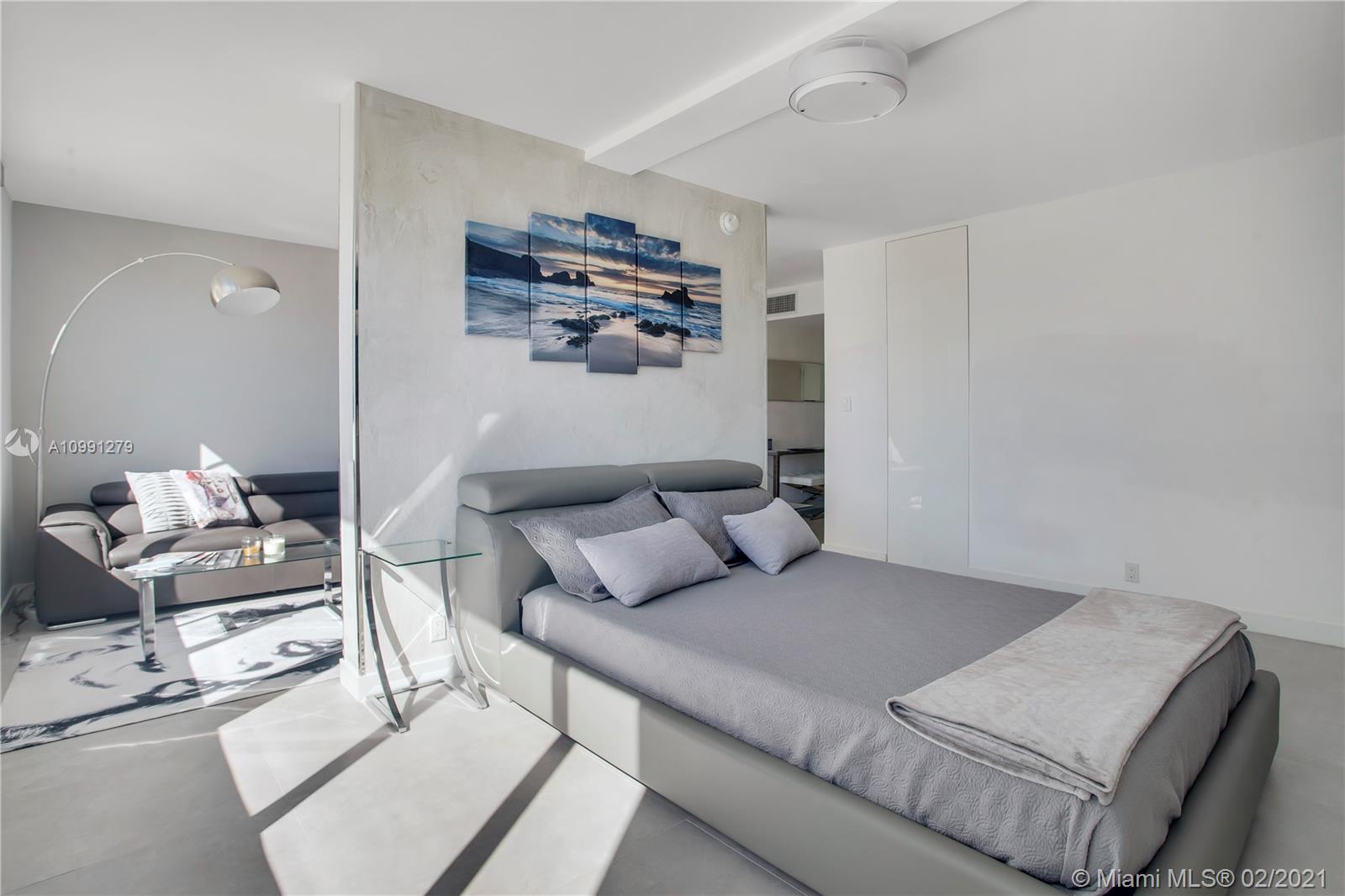 Completely renovated unit. Seller spared no expense and thought of everything! Junior 1 bedroom featuring large picture impact windows to allow maximum light. Dreamy modern kitchen w/ Gorgeous white custom Italian cabinetry, stainless steel appliances, lovely white quartz counters, modern gray backsplash, hood, wine cooler. White Custom push and soft close built in closets and cabinetry. Recessed lighting. Large custom built walk-in closet. Renovated bathroom with rain shower, gorgeous white modern pattern tile, glass encased. Unit comes with all electronics and furniture. This is a dream unit. Amenities include gorgeous bayside pool area with dramatic views of the bay and downtown Miami + state of the art fitness center. On site super market. Check out HD Video tour