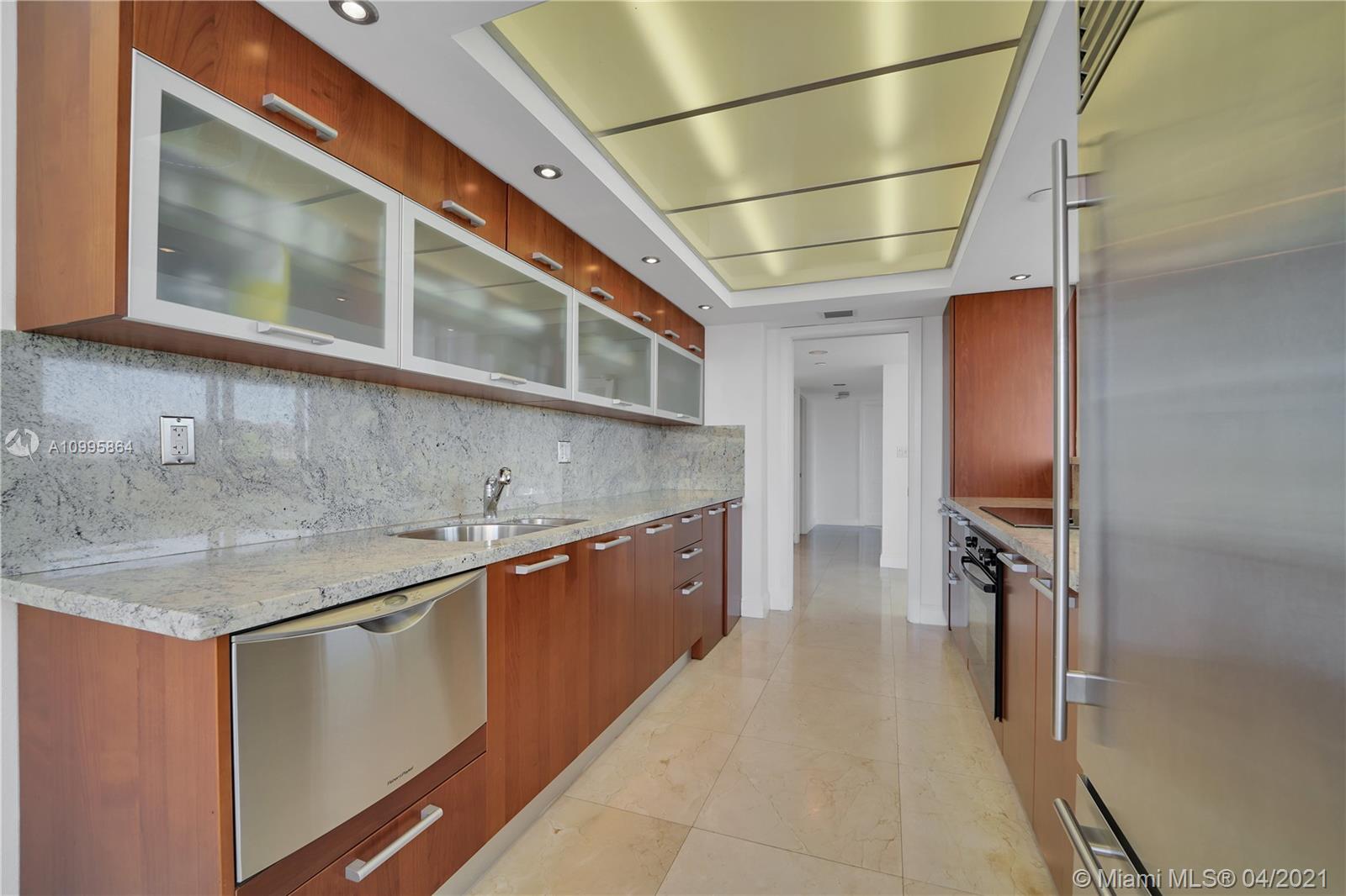 2 Bedroom 2 Bath corner unit. Renovation included IMPACT GLASS floor to ceiling windows in all rooms. Marble floors throughout living/dining area and ceramic "wood" floors in the bedrooms. Kitchen with breakfast nook has custom cabinetry with Sub Zero and Bosch appliances. Guest bathroom features walk in shower. Unit has a RARE balcony that wraps around the entire unit with access to all rooms. The building recently completed the renovation of the resident hallways. The pool and gym renovation are in the final phase of completion with an expected March completion date. All assessments have been paid. South views of Govt Cut and pool deck. Easy to show