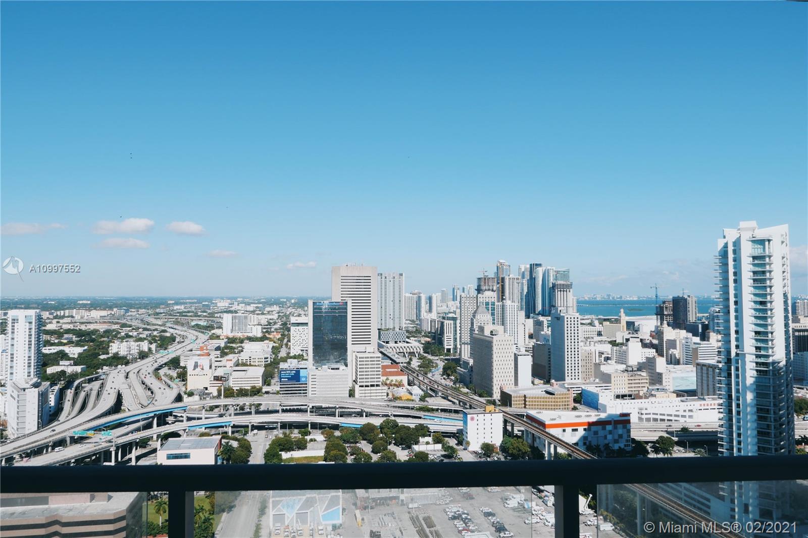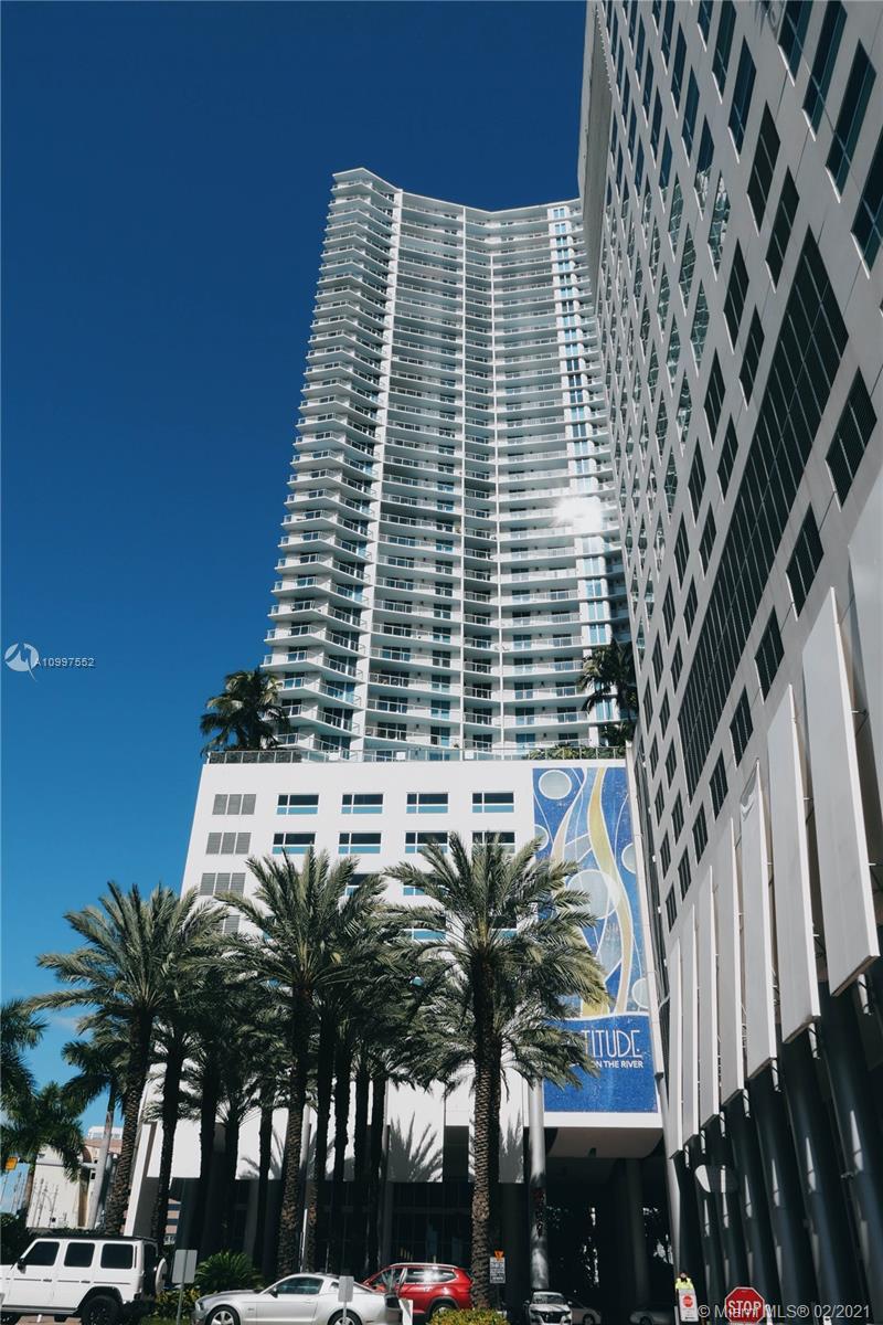 Miami skyline, Miami River and Bay views from this great unit at Latitude on the River. Kitchen offers top of the line appliances and granite countertops. 2 bedroom, 2.5 baths on a high floor. Modern finishes with porcelain flooring through main living. Brand new carpeting in both bedrooms, freshly painted unit in all white. Both units have access to balcony and views. Views of North and Northeast, water, city lights. Ideally located close to Brickell City Centre. Walking distance to stores, Publix and restaurants. Minutes from I-95 and airport. Easily accessible, one assigned parking spot.