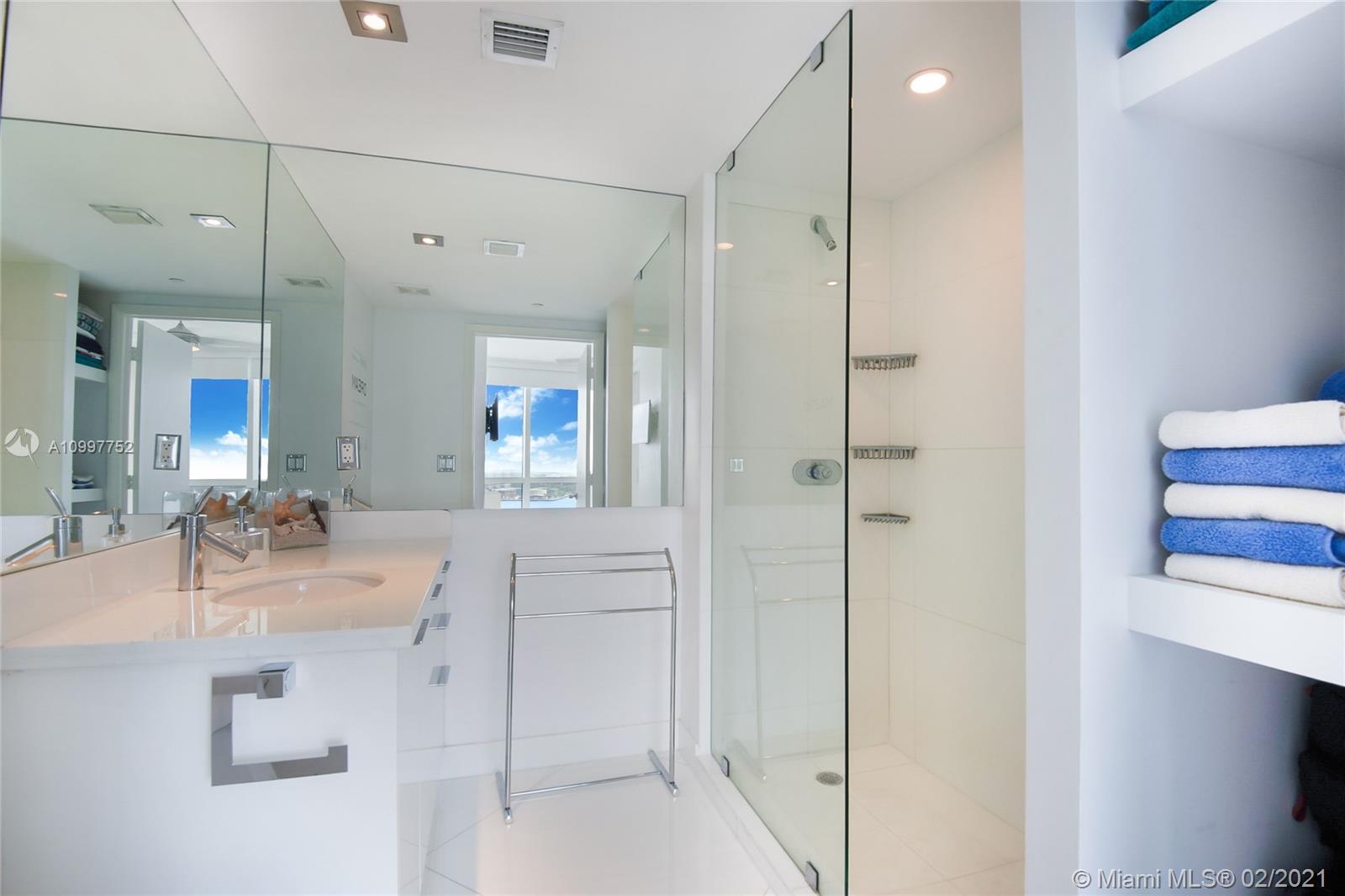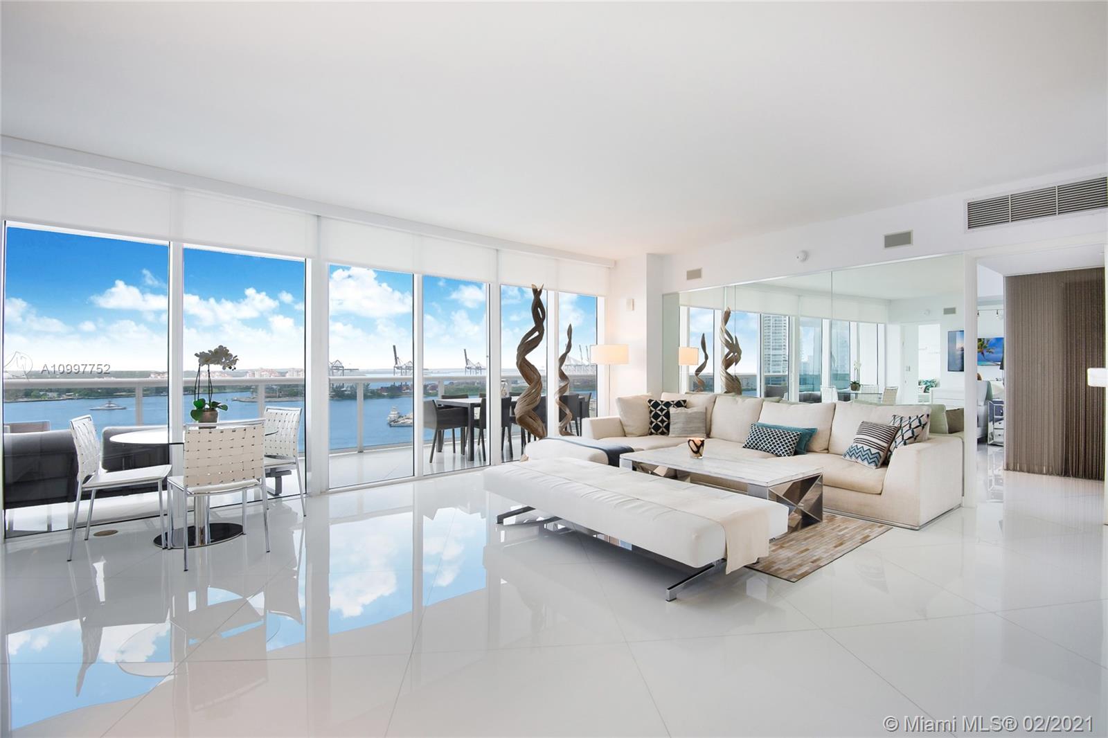 One of the few and most-desired, direct bay-front apartments at the Murano Grande in South Beach. This 2/2 floorplan is impeccably designed and fully renovated with bright, white surfaces, white "glass" flooring, upgraded bathrooms, closets and more. Direct water views from every room. It has an open kitchen plan with Subzero and Miele appliances, a sit up bar, living and dining area and more. The expansive 336 sqft (31.2 m²) terrace offers significant additional living space and stunning views of the Miami Beach Marina, Fisher Island, Downtown Miami and Biscayne Bay. Murano Grande provides superfast Internet, HD television and three TIVO units as part of your maintenance. Amenities include an onsite restaurant, tennis court, an extensive gym and world class pool with towel service.