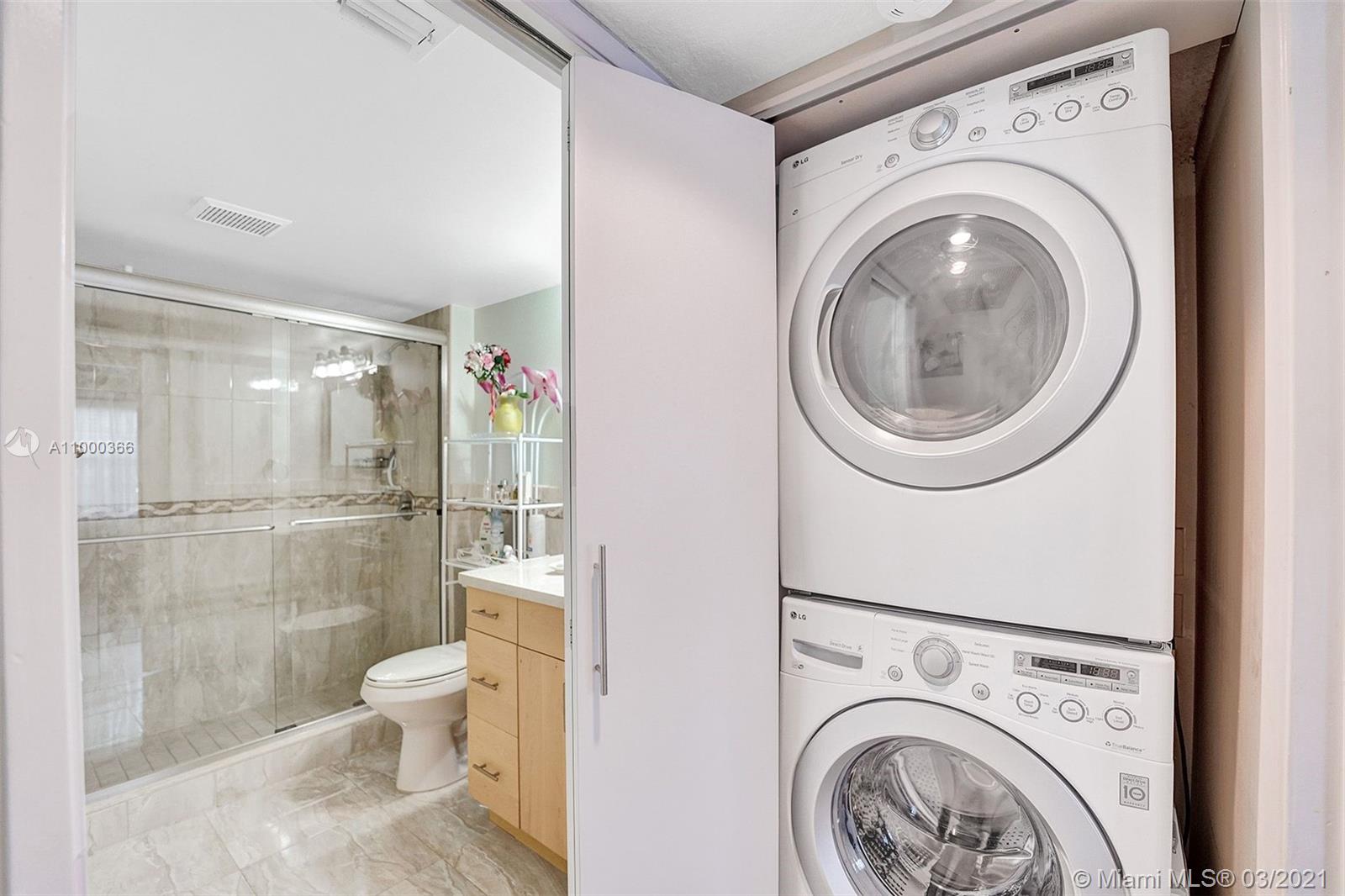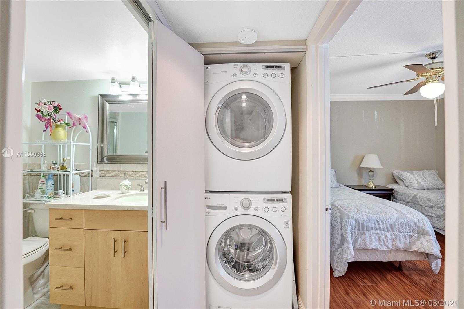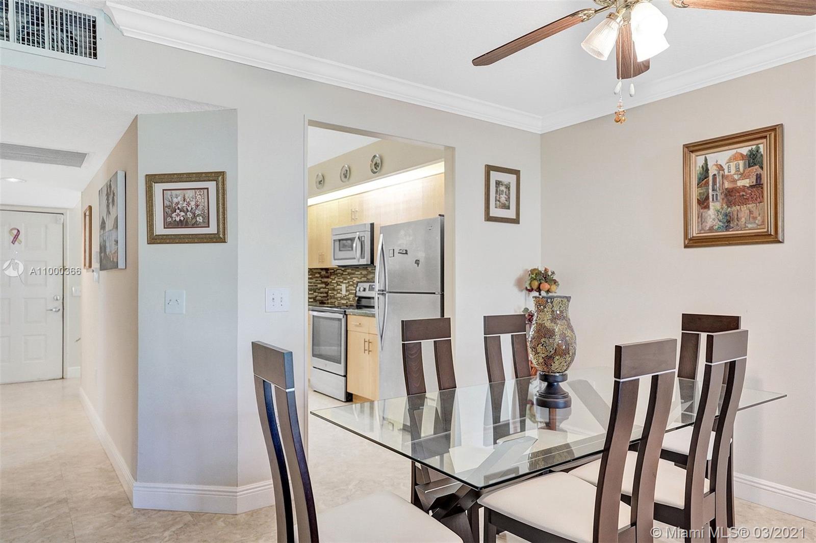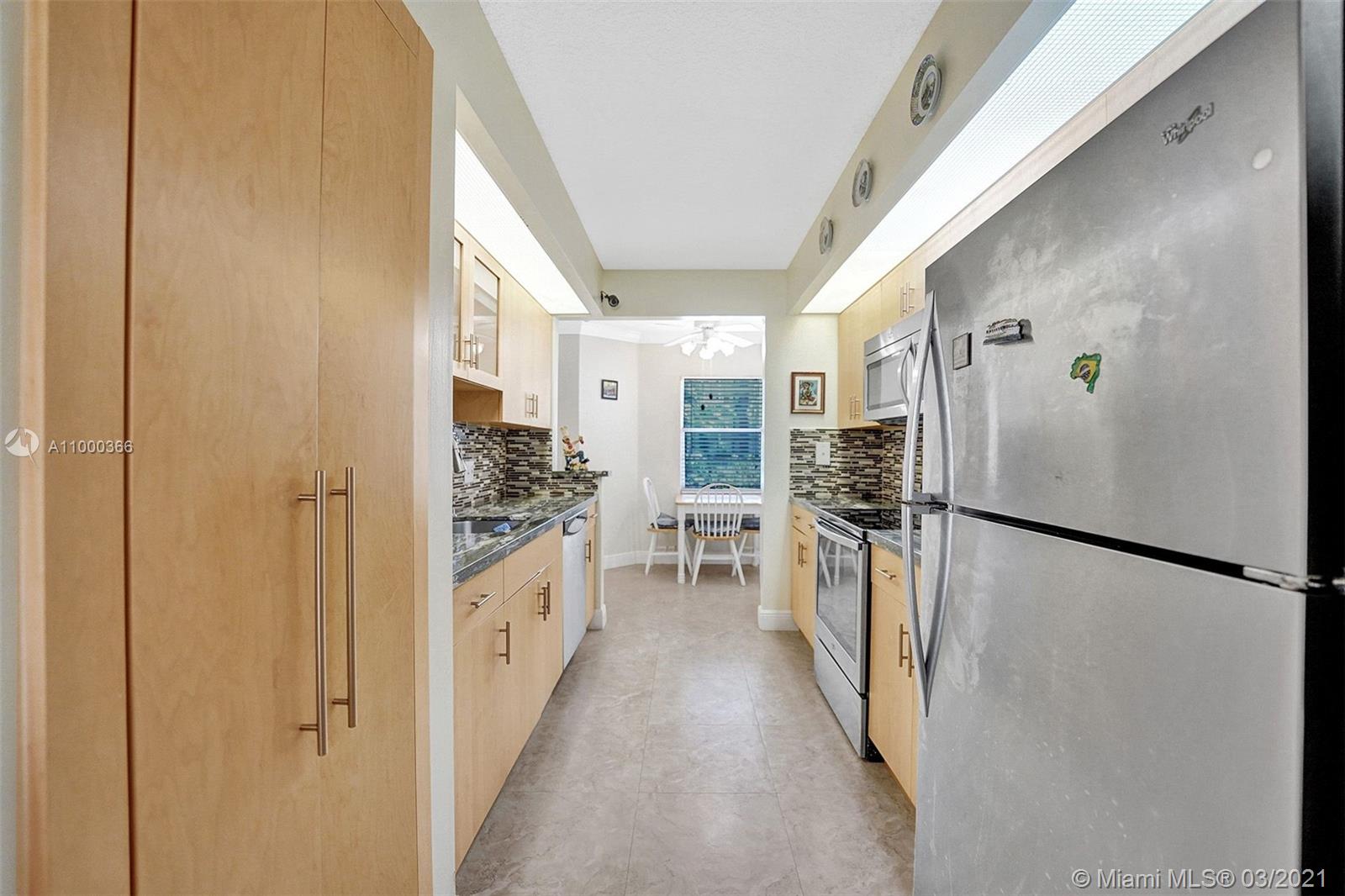 WOW! Completely Updated PRIMROSE model with high-quality finishes and Floor to Ceiling Impact Glass and Door on Patio. This home features very high-quality finishes such as a custom kitchen with wood cabinets, quartz counters, glass backsplash, and stainless-steel appliances. Gorgeous Tile and ceiling fans throughout. Both bathrooms have also been updated with custom finished. Spacious bedrooms both with walk-in closets that have been built out. All closet doors have been replaced. Oversized front-loading washer/ dryer. The pool is just steps away from your door. Century Village is a 55+ community with endless resort-style amenities. It has a million-dollar clubhouse, transportation, 2 fitness centers, 24-hour security, 8 swimming pools, tennis court, movie theater, and so much more!