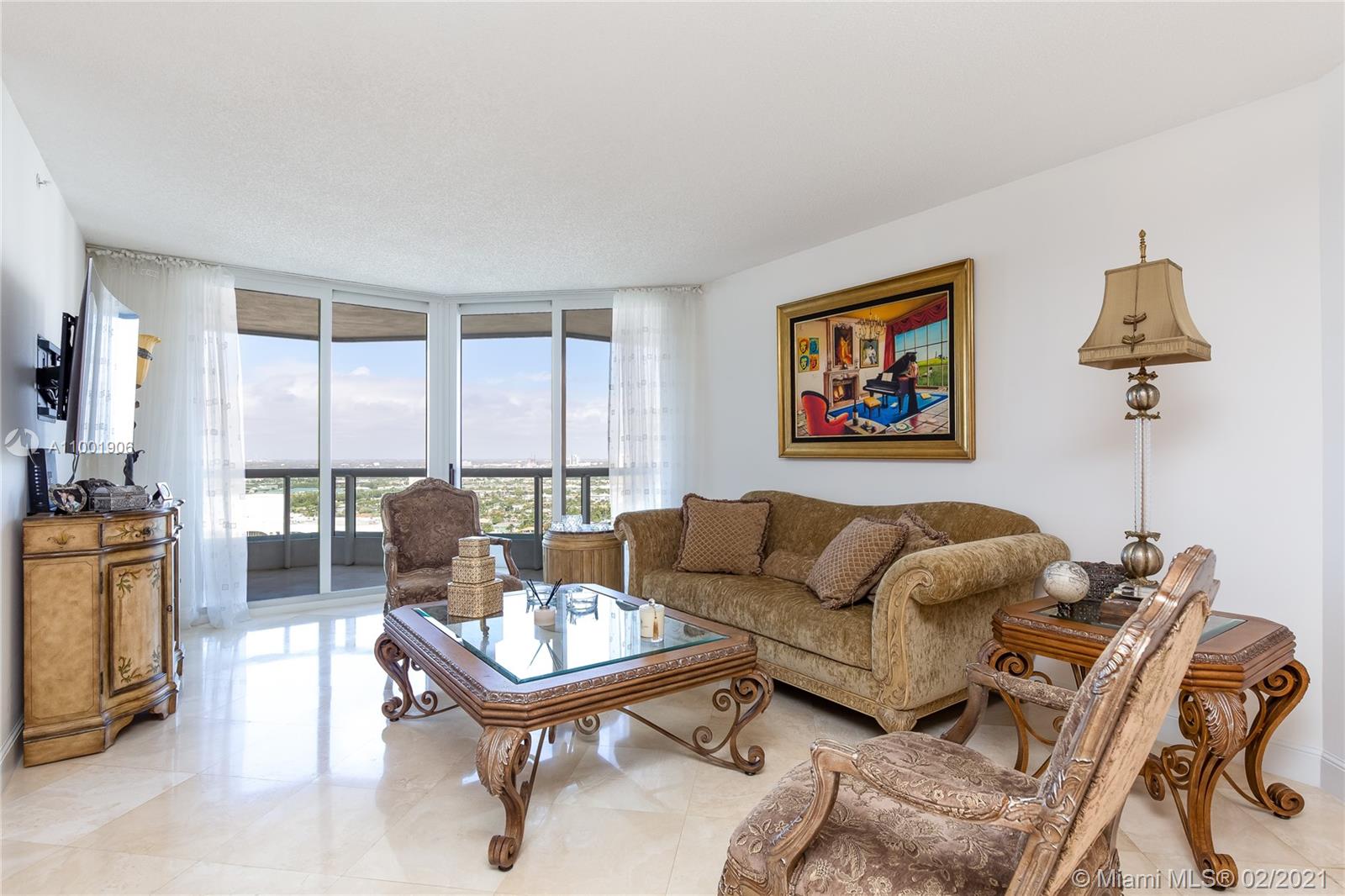 BEAUTIFUL CORNER UNIT 3 BED 2 BATH. MARBLE FLOORS IN LIVING AREA, BLINDS, STORAGE ROOM,BEAUTIFUL OCEAN, INTRACOASTAL AND CITY VIEWS. ONE OF THE BEST BUILDINGS IN AVENTURA. IMPECCABLY MAINTAINED, THIS UNIT HAS LARGE BEDROOMS EACH WITH CLOSETS...CLOSE TO WATERWAYS MARINA, PARK, TARGET, WHOLE FOODS, AND ELIGIBILITY FOR CHARTER SCHOOL OF AVENTURA. AMENITIES INCLUDE 3 POOLS, 4 TENNIS COURTS, BBQ AREAS, ACCES TO WATERWAYS MARINA.
