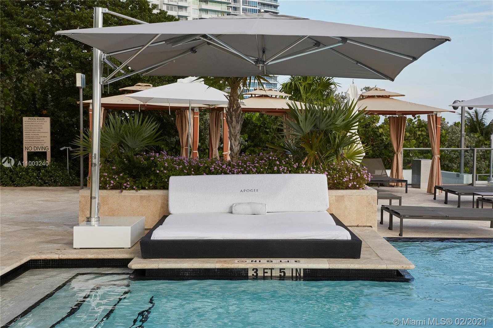 Ocean and Intracoastal views from this South/North facing flow-thru home. Stone floors in the living areas and wood floors in the bedrooms. Apogee is a boutique building with only 67-apartments offering first class personalized service. Located in the South of Fifth luxury neighborhood. Offering ultra-high-end condominiums, top rated restaurants, beautiful beaches, the Miami Beach Marina and South Pointe Park.