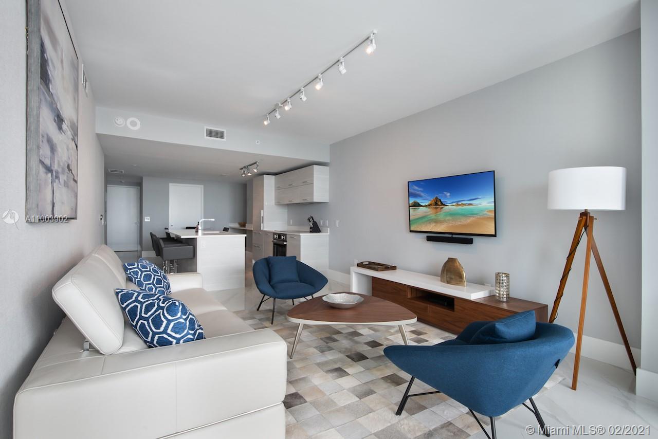 Luxury, new construction available for sale at Paraiso Bay in Edgewater, Miami. Stunning designer turnkey residence. Enjoy direct water views from the 35th floor in this spacious 2 Bedroom/3 Bathroom unit overlooking Biscayne Bay. Private elevator entry & large balcony. Open floor plan with pristine finishes, including stainless steel appliances. Unit is upgraded with closet build-outs, elegant wallpaper, bar extension, and much more. Enjoy Paraiso Bay's 5-Star resort amenities near 5-acres of gardens and parks, an exclusive marina, a waterfront Beach Club, and AMARA restaurant. The Edgewater neighborhood/Paraiso Bay is just minutes from the heart of Miami's vibrant arts, entertainment, and design districts and famed Miami Beach.