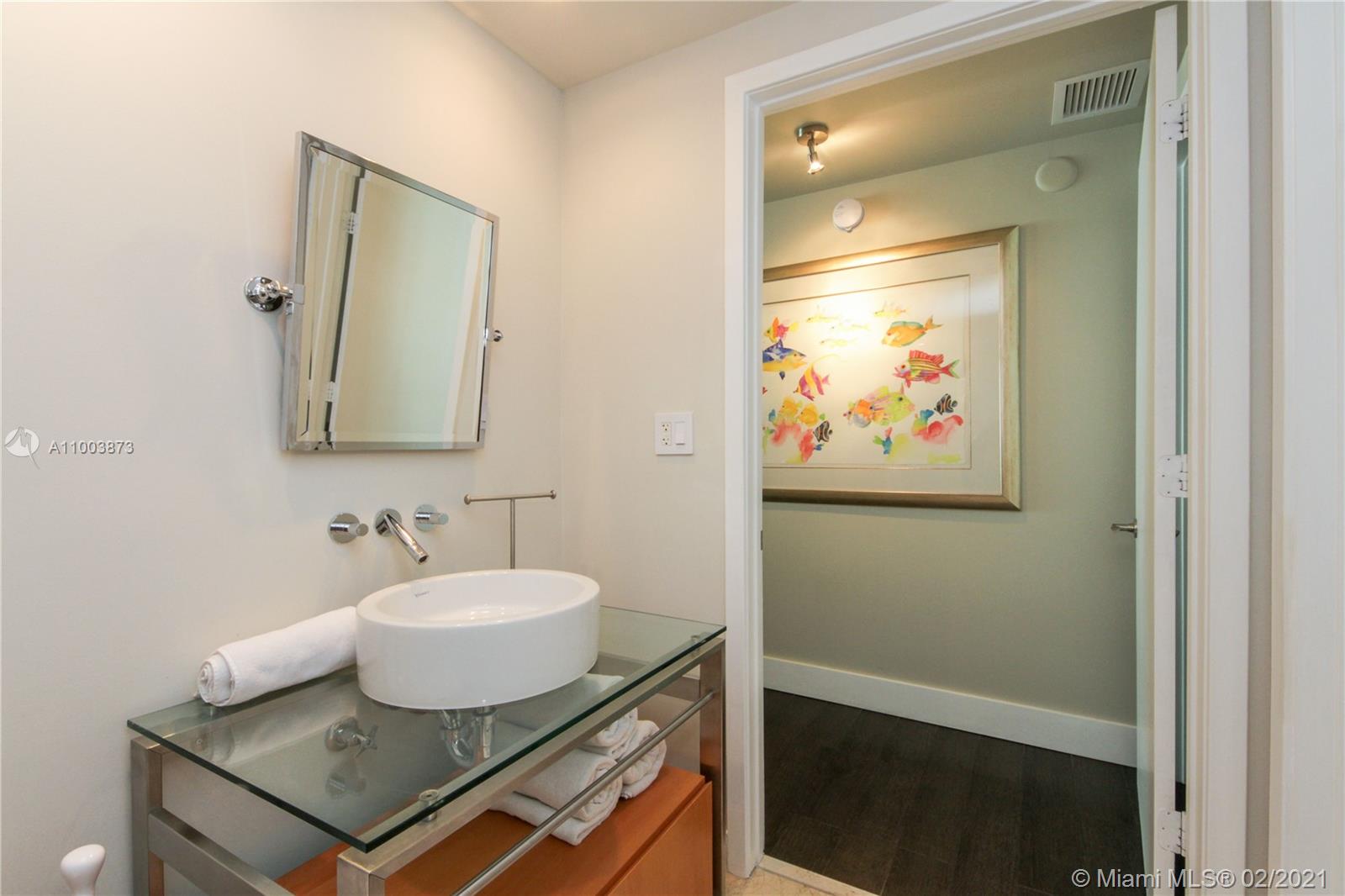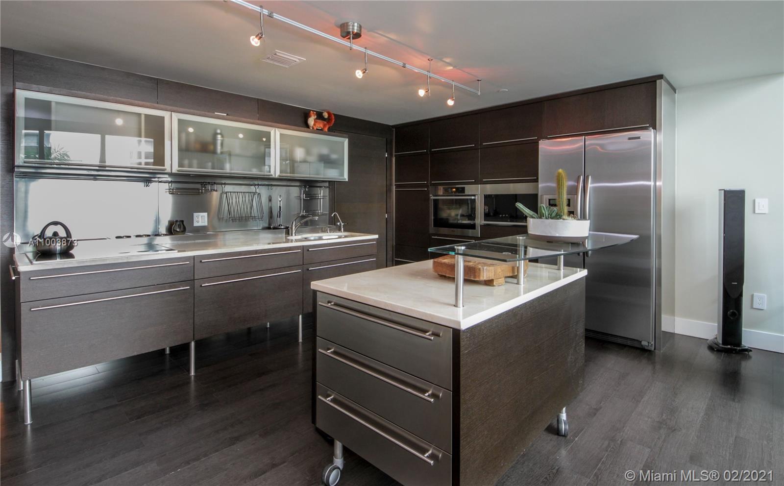 This Three level upgraded townhouse is the best kept secret in Miami Beach. It’s 18'8" tall ceilings, 3BD/3BA, large den, 2 balconies & private 1,300SF rooftop terrace can rarely be found. Outstanding upgrades incl: modern lighting throughout the unit including Artcraft 16FT Chandelier, custom closets, high end in-wall speakers, ADT alarm system, Miele app, designer Duravit bathrooms, Porcelanosa dark walnut flooring, etc. Ideal for client that wants spacious, "house-like" condo in a boutique building.