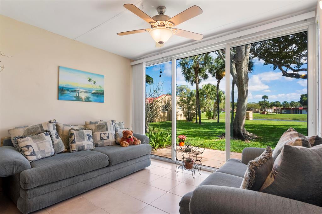 Recently Renovated 1345 SQ FT Corner Villa with Beautiful Lake and Garden View and Steps from a Private Satellite Pool. Remodelled Kitchen and Bathroom, Newer A/C Water Heater and Reverse Osmosis. Washer and Dryer also in Unit and Owner has added 200 AMP Service. Tile Throughout Home Leading into the Sun Room which is opened up to Living Area . Recessed Lighting in all Living Areas. Al Windows, Which are Double Pane Energy Efficient and Alarmed were Replaced which includes Patio Sliding Doors . Digital Alarm System set up with Smoke and Carbon Monoxide Detector also. Roof is 4 Years old . YOU MUST VIEW THIS HOME. Furniture Negotiable.