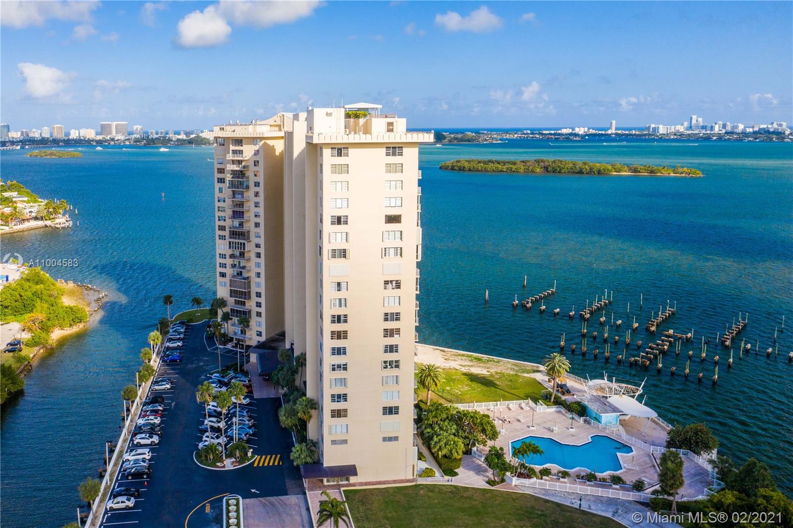 Enjoy breathtaking unobstructed Biscayne bay and city views from this gorgeous condo at the Jockey Club. Highest floor one bedroom condo in the building. Amenities include an exercise room, pool, tennis courts, complimentary valet parking, and 24 Hour Gated Security. Centrally located just minutes from the Miami Shores Golf Course, the Shops at Bal Harbour, and much more. Marble floors throughout, stainless steel appliances, a spacious living area and a large master bedroom with plenty of closet space! Call to schedule your showing today!