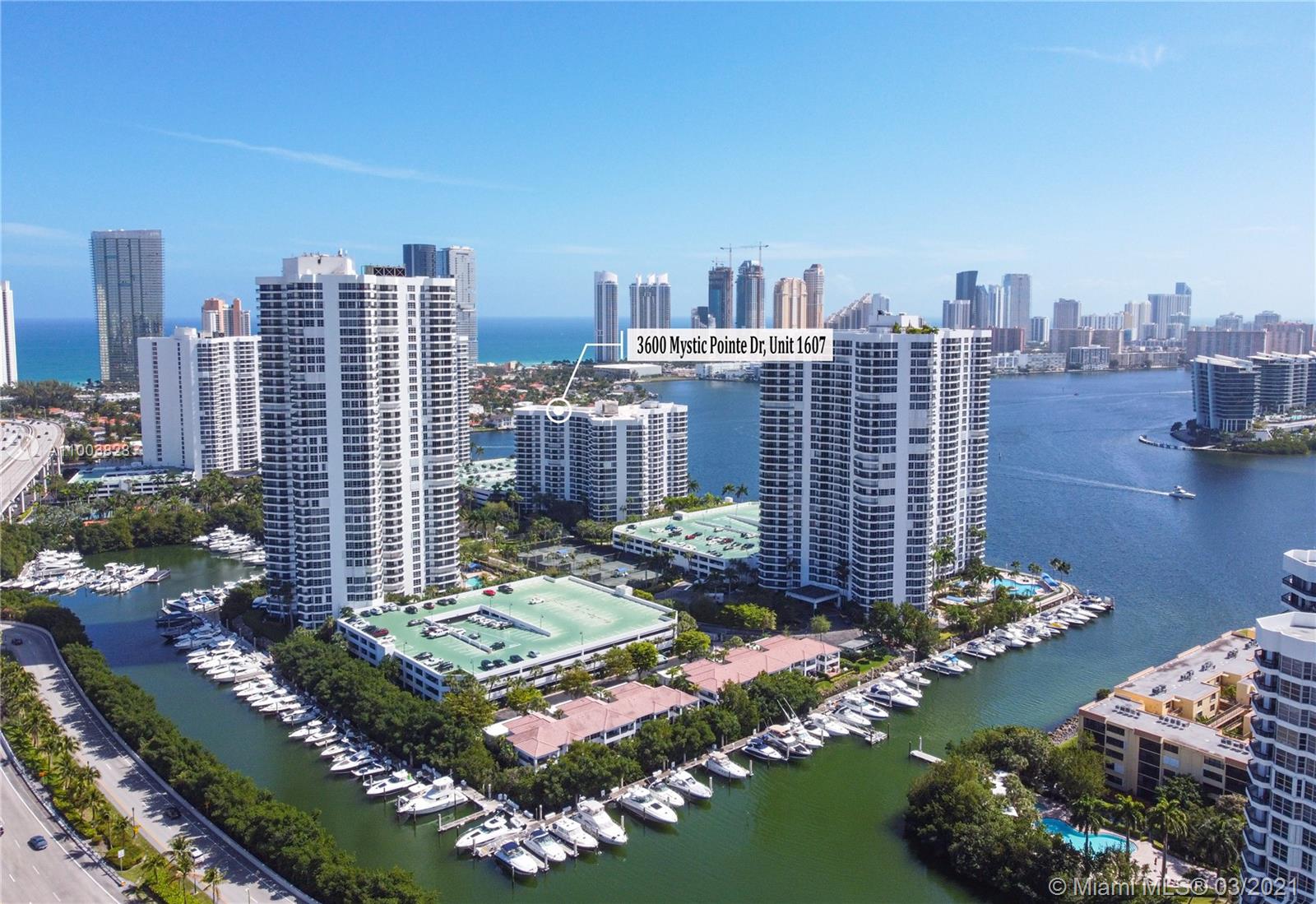 Beautiful corner condo located in the sought-after Mystic Pointe community in Aventura. Amazing panoramic views and the intracoastal. Very large main bedroom w/en-suite bathroom. Dual vanity, bathtub & separate shower. Large walk-in closet. The living room offers plenty of light & serenity while enjoying boats in the marina. Washer & Dryer. Minutes from the Aventura Mall, Sunny Isles Beach & houses of worship. Amenities incl. very large pool, sauna, spa, restaurant, hair salons, mini market, 8 tennis courts, tennis pro. The City of Aventura is strategically located close to FLL & Miami airports. Great schools.