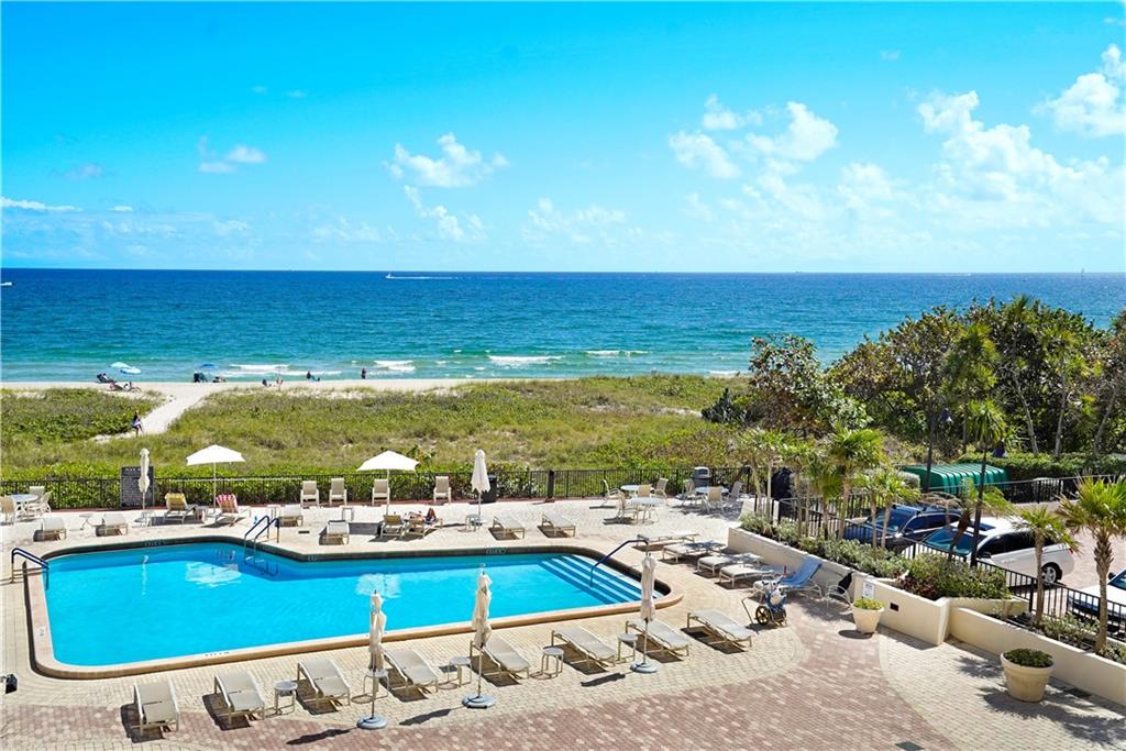 Amazing views from the private oceanfront balcony of your 2bedroom/2bath condo.Popular split floor plan.Furniture optional.View the beach from the bedroom windows,too!Spend time at the heated pool or take a few steps down to the wide beach.Ocean Place is a PET FRIENDLY condo with resort-style amenities:24/7 valet parking,front desk concierge,gym,yoga room,billiards,saunas,bbq grills,social room,onsite management,library,theater,doggy relief areas,more.Lauderdale by the Sea has restaurants,shops,bars and even a Publix.Close to all Pompano Beach and Ft Lauderdale have to offer.Come visit to find your place in Paradise.