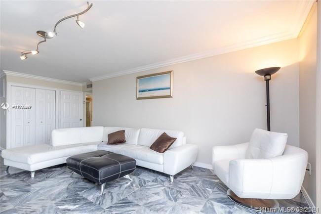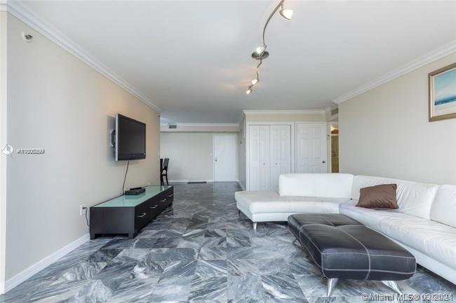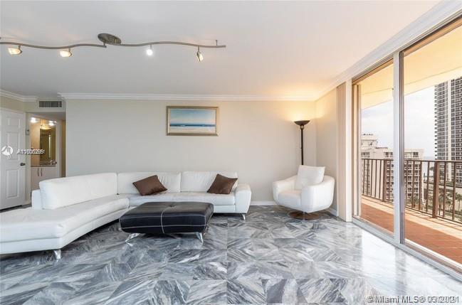 Best line in the building! Beautifully updated and spacious 2 bedroom, 2 bath corner unit with a massive wrap around balcony overlooking the ocean, bay, city, park and pool! 2 covered parking spaces included, washer/dryer in unit, 24/7 security, hurricane shutters throughout, multiple grocery stores, restaurants, plazas and beach within short walking distance.