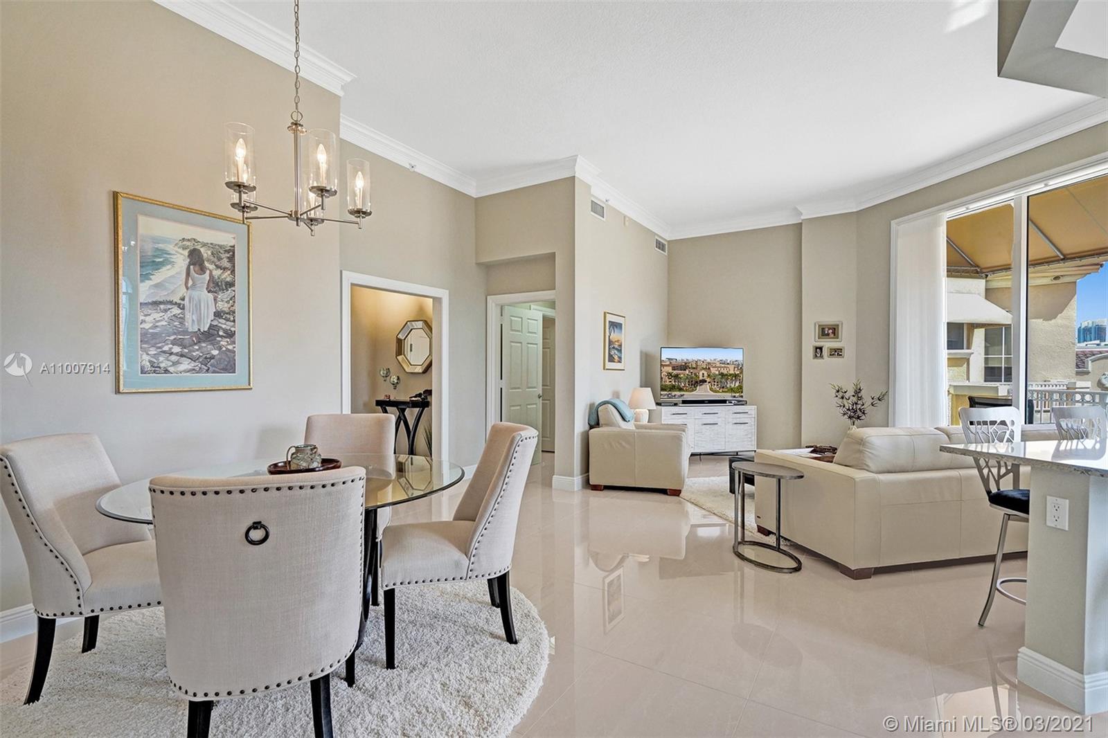 Imagine waking up to the feeling of vacation mode. This home gives you that feeling. Enjoy this top floor newly renovated luxurious condo with 12 foot ceilings. Sit on your balcony while enjoying your morning coffee and take in the breathtaking pool and city views. Get your steps in walking waterside along the newly renovated dock or stay in the AC and start your day in the gym overlooking the water. This is the home that all your friends and family will want to come to enjoy the dinner parties, birthdays or for the big game. Move in ready, all this high-end furniture stays! Just a short walk to Aventura Mall, Publix and restaurants. Brightline station at Aventura Mall is expected to be done by Fall 2021 to make travel even easier. Contact listing agent for private showings.