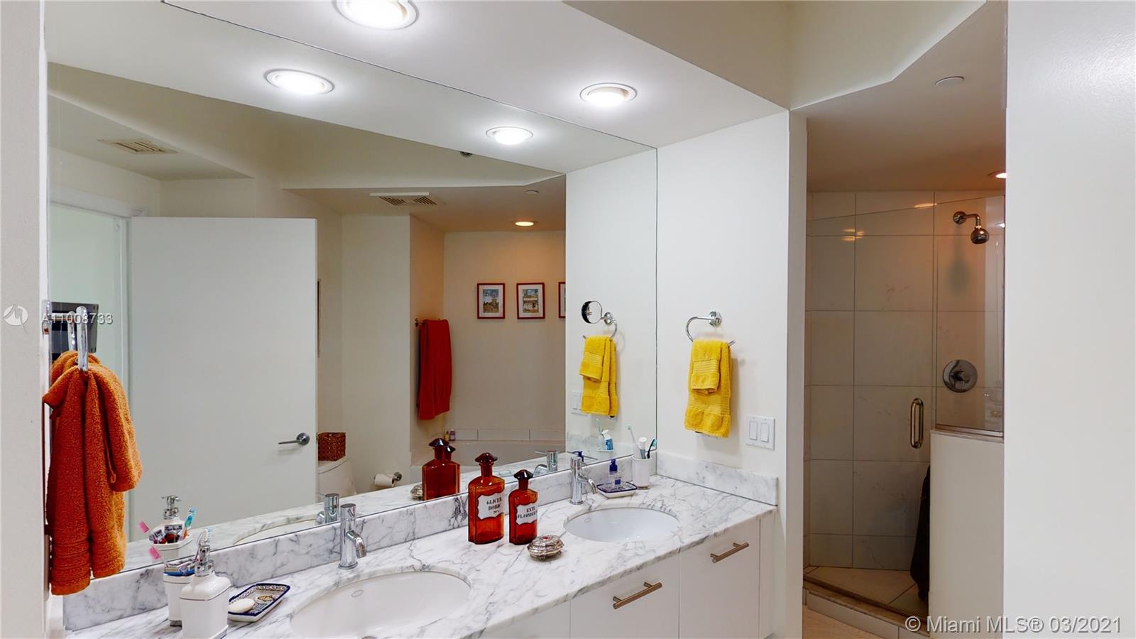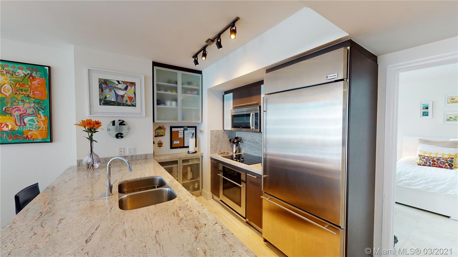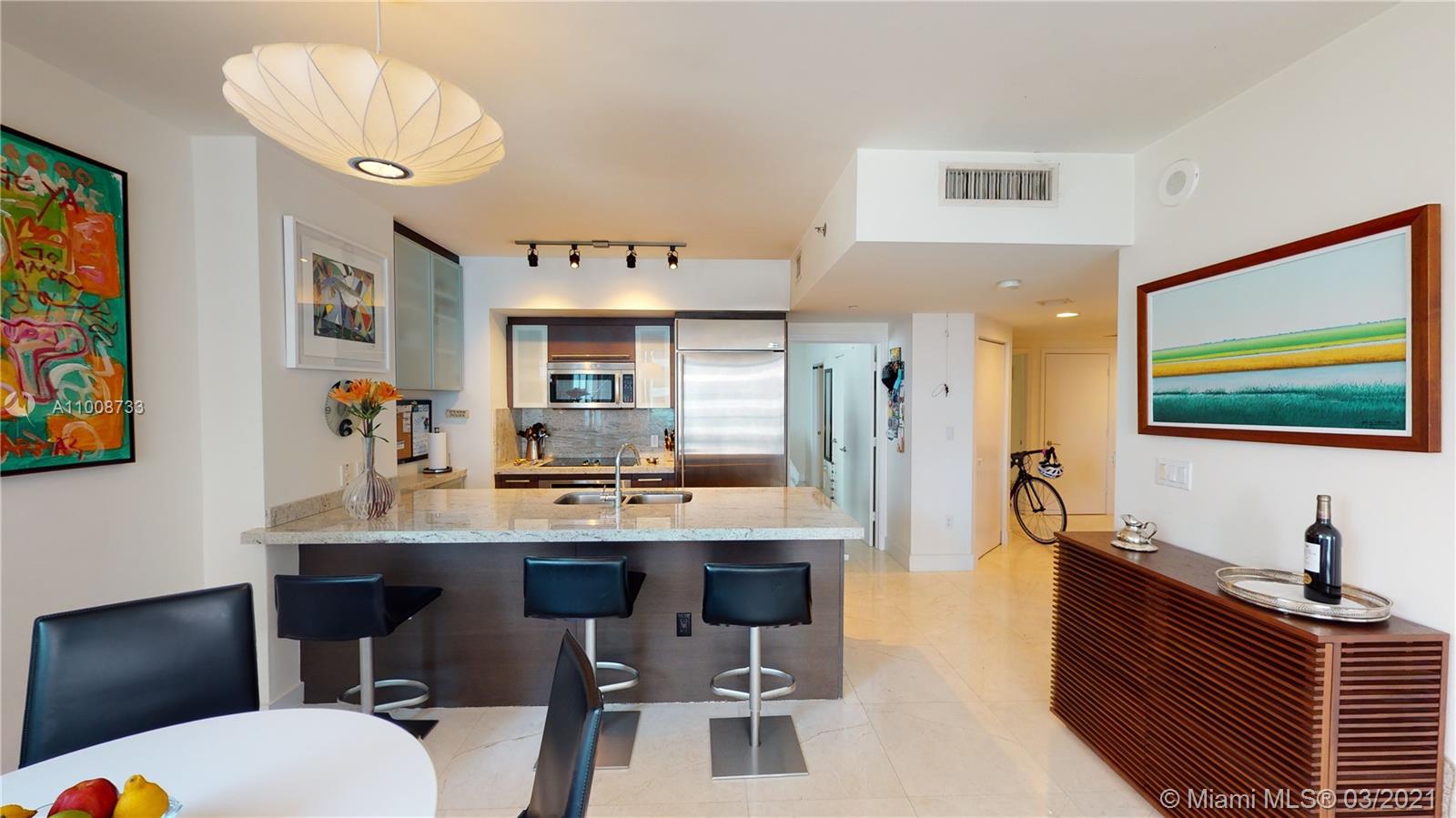 Sublime condo with South views of city skyline & Biscayne Bay. Located in the heart of bustling Brickell on the East Tower of trendy "500 Brickell" building. This 2bed / 2bath / 1 parking corner, offers upgraded kitchen with new & larger granite countertops & additional cabinet space. Beautiful marble floors throughout favors the openness of continuous impact doors & windows allowing the sun to play inside while giving open access to a large balcony. The master suite comes with spacious closets, balcony access, dual sinks, whirlpool tub & cozy shower. Featuring a split plan with the second bedroom & bathroom on neutral colors. This building amenities are meant to be thoroughly enjoyed. Pools, gym, entertaining areas, reception desk, valet & much more for a true Miami living experience!