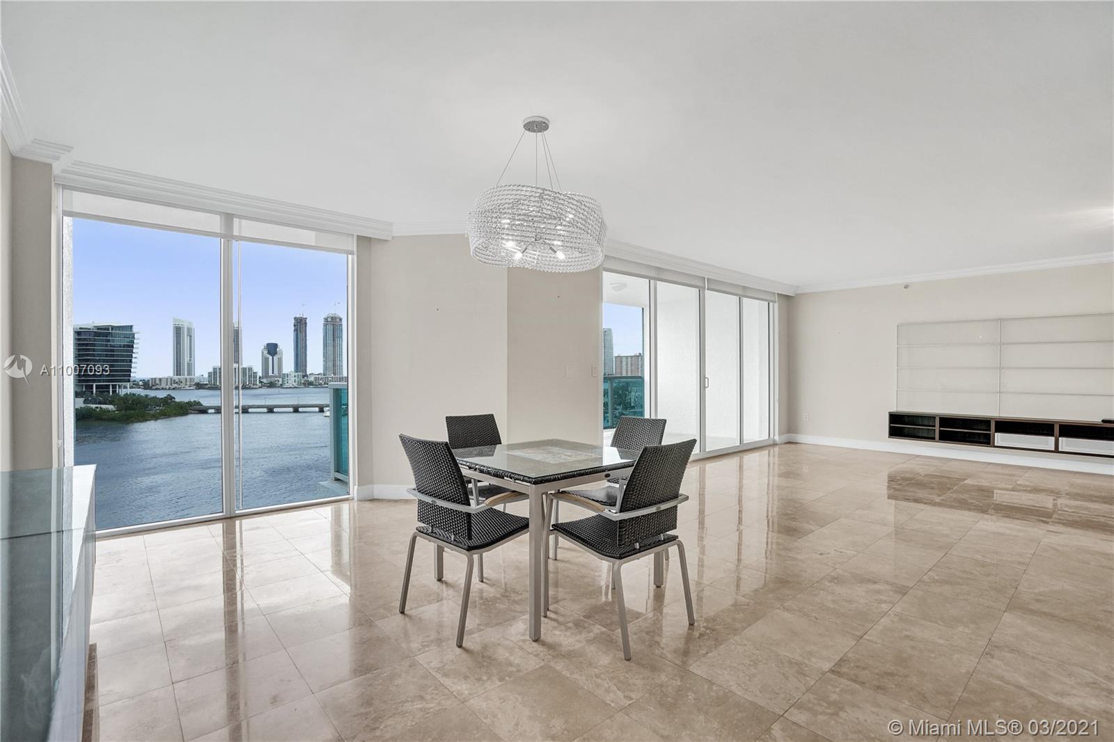 Unobstructed views from floor to ceiling windows. Filled with sunlight, spacious 2Bed + Media Room. Ocean and Intracoastal views from one balcony and marina view s from the other. Private elevator, marble and carpet floors, renovated kitchen, granite countertops & stainless steel appliances, spacious walk-in closets, large laundry room. In an elegant modern building, this exceptional home has open spaces and is designed for function & livability. Cable TV & internet included in maintenance. Easy to show.