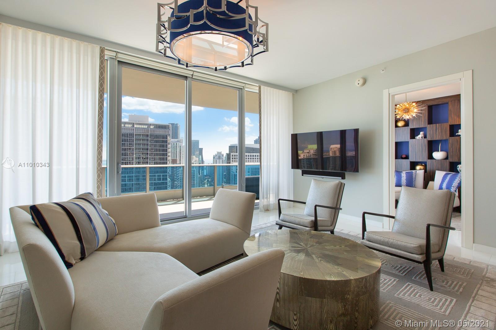VIEWS- VIEWS -VIEWS! Picture perfect ocean, bay, Miami River, & Miami Skyline vistas from this “EPIC” residence. Spectacular, glamorous, and bright come to mind when describing this designer themed 2/2.5 penthouse-level residence, which is in the highly sought after "04 line" of the building. Have a drink and enjoy the view from the Art Deco themed Italian bar or the spacious 46th floor balcony. The open kitchen is outfitted with Miele and Bosch appliances, and state-of-the-art technology control systems including security, lighting, and window treatments are throughout. Epic residences feature luxury amenities including a private pool for residents and concierge-elements. This turnkey property designed by Taylor & Taylor can also be purchased fully furnished at LIST PRICE.