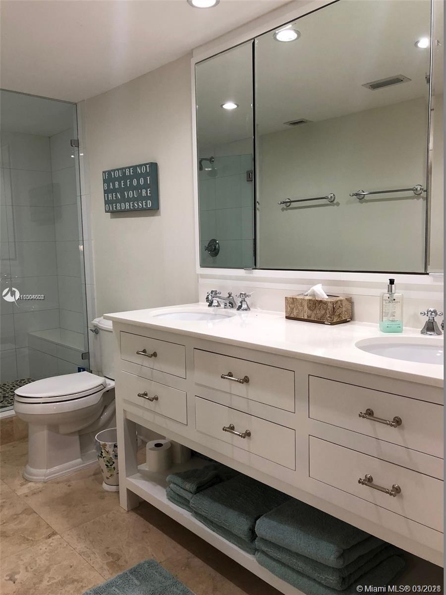 Beautiful 2 bedroom/2 bath updated condo with floor-through floor plan. Breathtaking views of Atlantic Ocean and Biscayne Bay. Remodeled kitchen and bathrooms. All stone floors, floor to ceiling windows and sliding doors. Casa Del Mar world class amenities include: tennis courts, basketball court, gym, waterfront pool, newly designed lobby and common areas. Beach chairs and umbrellas, 24 hour concierge and security. Exclusive and private elevators serving two units per floor. Tenant occupied till June 8th 2021.