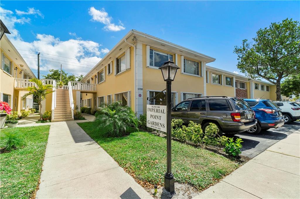 Quaint and Modern two (2) bedroom, two (2) bathroom Imperial Point Gardens condominium in highly desired quiet community. At 1,100 square feet, this second floor home is one of the largest and nicest 2 bedrooms available, close to the pool, clubroom and billiard room. It is in excellent condition with fully remodeled kitchen and both full bathrooms. Home features stone tile throughout and carpet in both bedrooms. Kitchen features include a dishwasher, disposal, built in Microwave, electric range, pull out shelving in pantry, and refrigerator. The home has ceiling fans in every room. Your Parking space #58 is located right outside. This home is near everything Fort Lauderdale has to offer; walking distance to restuarants, shopping, and close to the beach, etc.