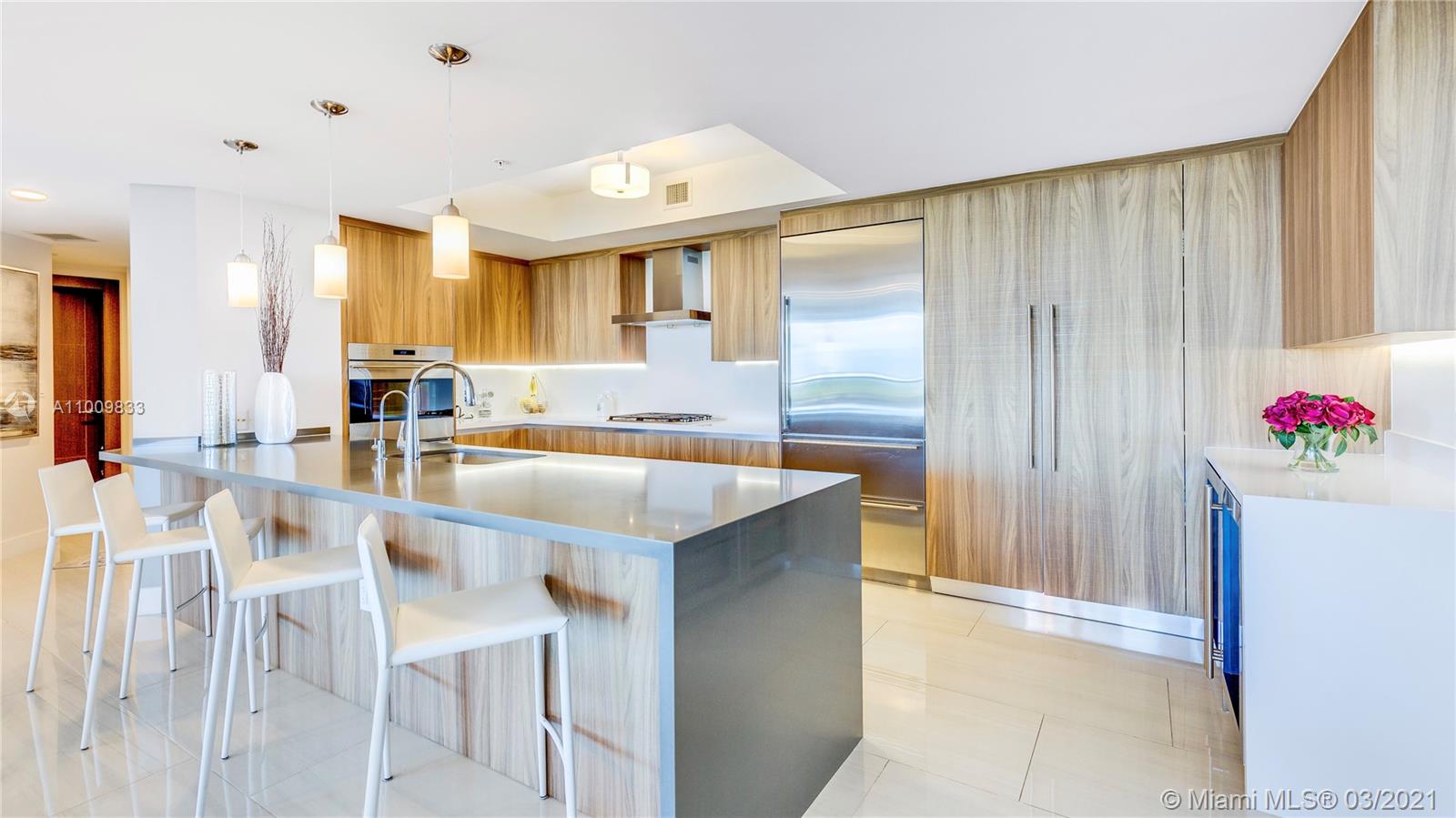 Exquisite Residence offered Turn-Key, Furnished & Decorated. One of RIVA's Most Desirable Floor-plans. Custom Work & Upgrades throughout. Ocean, Park & Middle River Views, Direct Elevator Entry, Private Terrace with Summer Kitchen BBQ, Italian Kitchen with Wolf Gas Cooktop, Sub-Zero & Reverse Osmosis Water System, Expansive Primary Suite with Custom Walk-In. 4th Room converts between Office & TV Room. Laundry Room with Utility Sink. 2 Parking & Storage. 40,000 SF of Amenities: Pool overlooking Middle River, 7,000 SF Gym with Yoga Room, Resort Style SPA with Sauna, Steam & Massage Rooms, Residents Lounge, Sunset Deck with Jacuzzi, Cucina to Entertain, 3 Suites for Guests, 24/7 Front Desk Attendant, Valet, 2 Dog Walks, 400 Feet of Waterfront, Paddle-board/Kayak Lockers & Central Location.