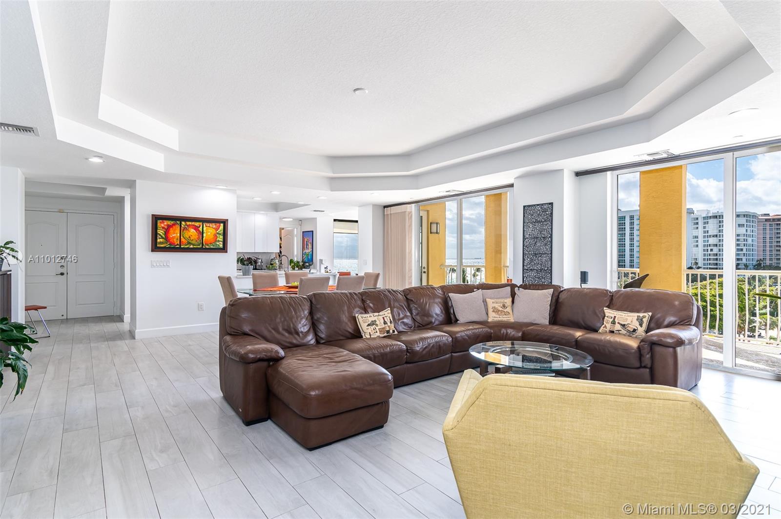 Luxurious building with semi-private elevator that leads you to a beautiful and recently renovated 3 bedroom apartment with modern porcelain flooring throughout, new white kitchen cabinets, and quartz countertops offering open space towards dining and living room area. Stainless steel appliances including wine cooler. Panoramic and gorgeous ocean views from kitchen dining, formal dining, living room, master bedroom, and of course from the 220 sq ft balcony. High ceilings with double trays and LED lighting. Private beach access and club across the street. Pool with barbecue area next to building docks. Low maintenance of $632 monthly which includes reserves. Very well-managed and maintained building with solid financial and reserves. All windows are high impact resistant for hurricane.